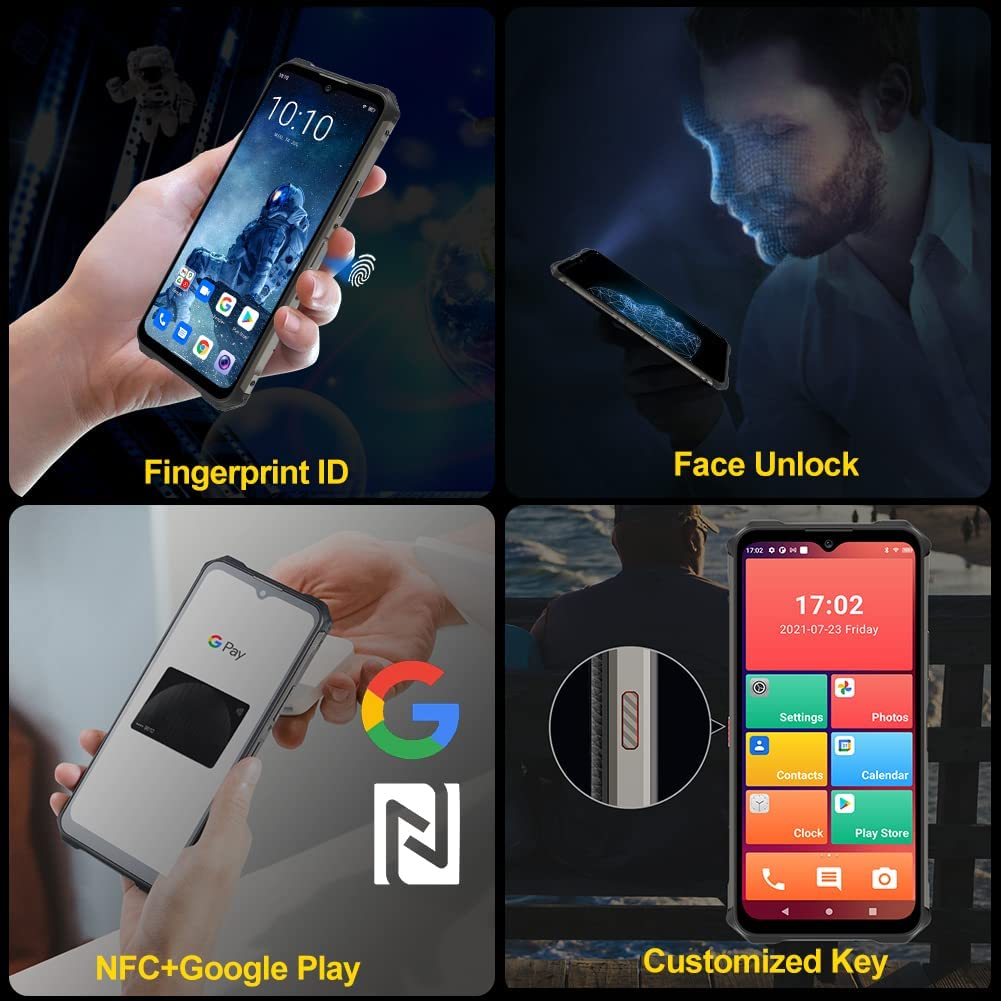 • 【8GB RAM + 128GB ROM memory, SD 256GB】Rugged mobile phone 8GB RAM allows you to keep all your favorite games and optimize your app experience, store up to 200 of your favorite movies, 128GB internal storage, absolutely meet your needs storage requirements. Plus, SD cards up to 256GB. (Note: SD card needs to be purchased separately.)