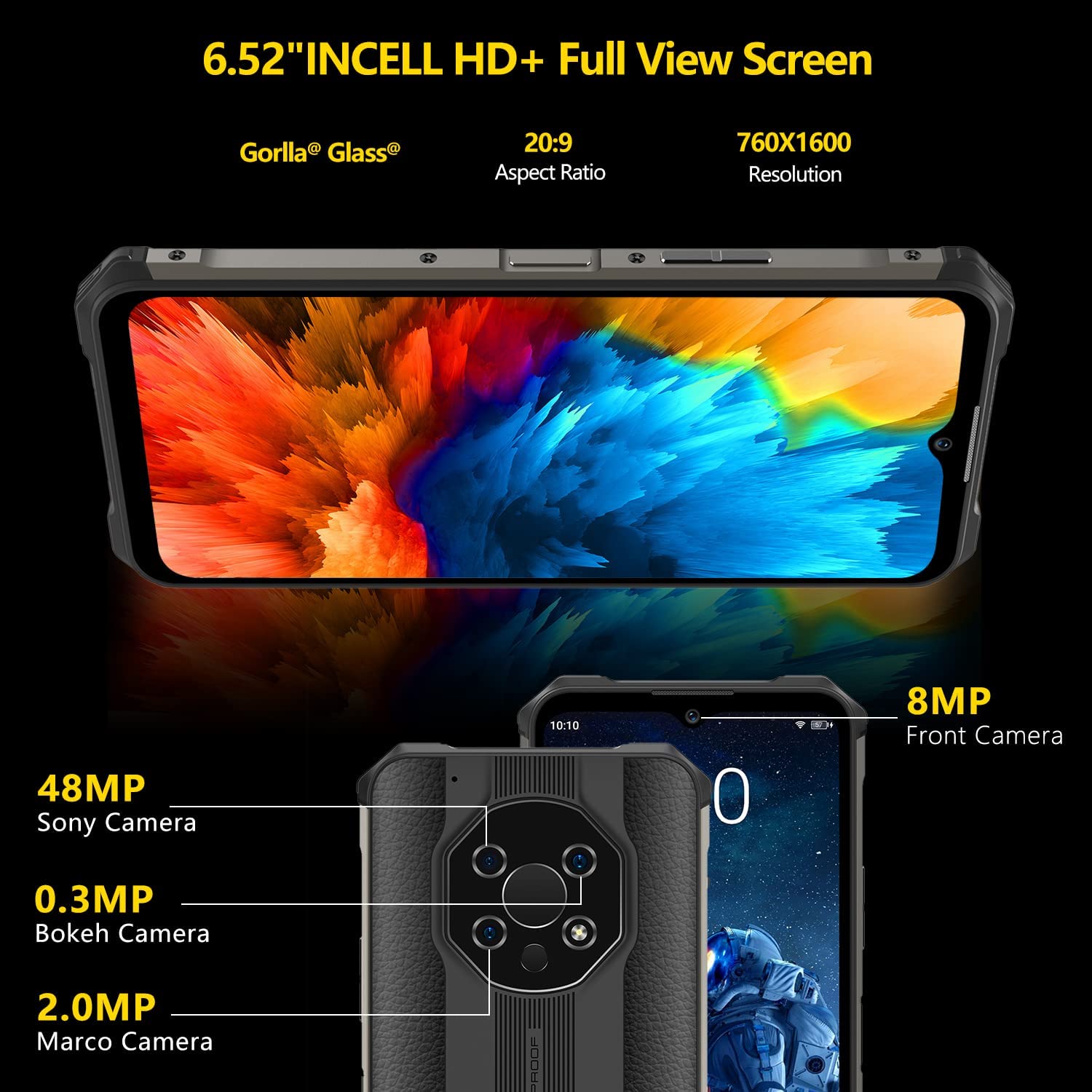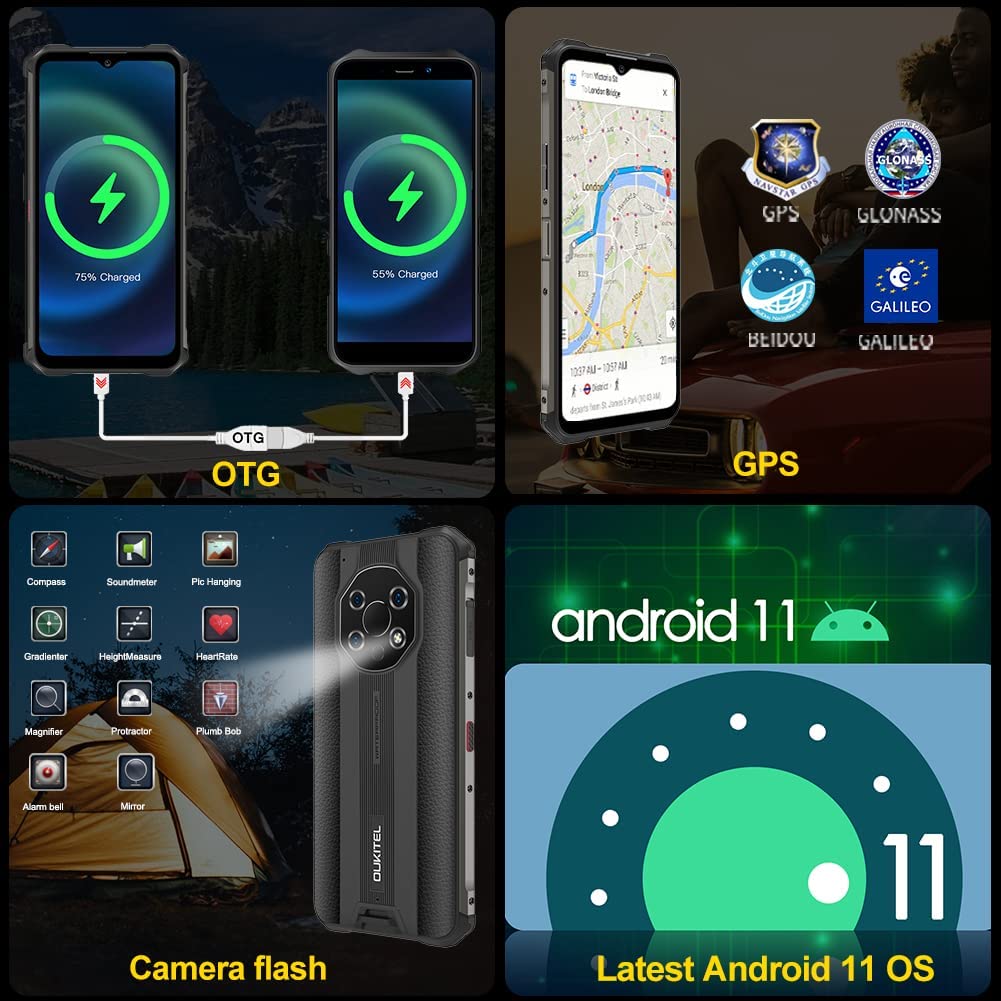 • 【5280mAh Battery & 18W Fast Charger】Explorers/professionals no longer need to worry about running out of rugged smartphone batteries while exploring/working. The use time can last 490 hours standby or 36 hours music or 26 hours talk or 3 hours vibration or 11 hours game time. Equipped with a USB Type-C 18W charger, which supports OTG function, it can charge other mobile phones.
