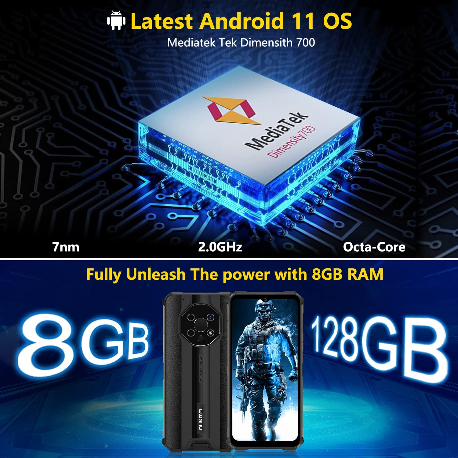 • 【Dimensity 700 Processor + Android 11 Operating System】Enter the new era of 5G with Oukitel Wp13 5G rugged phone, Octa-Core processor Mediatek Dimensity 700 equipped with dual 5g high-performance 7nm processors, providing smooth response and fast playback experience. An unlocked smartphone can provide you with powerful and stable performance, smooth multitasking, seamless audio and gaming experience.