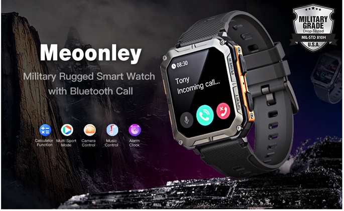 - 【Fitness Smartwatch for Outdoor enthusiasts】This Meoonley Sportwatch designed for outdoor enthusiasts.It pass Military Standard Verification. It can work in most of extreme conditions.And it support IP68 Waterproof standard.You can wear this sport watch while washing hands, walking in the rain or swimming even underwater sports. It can meet all your daily needs even underwater exploration.To enjoy the fun of outdoor exploration.