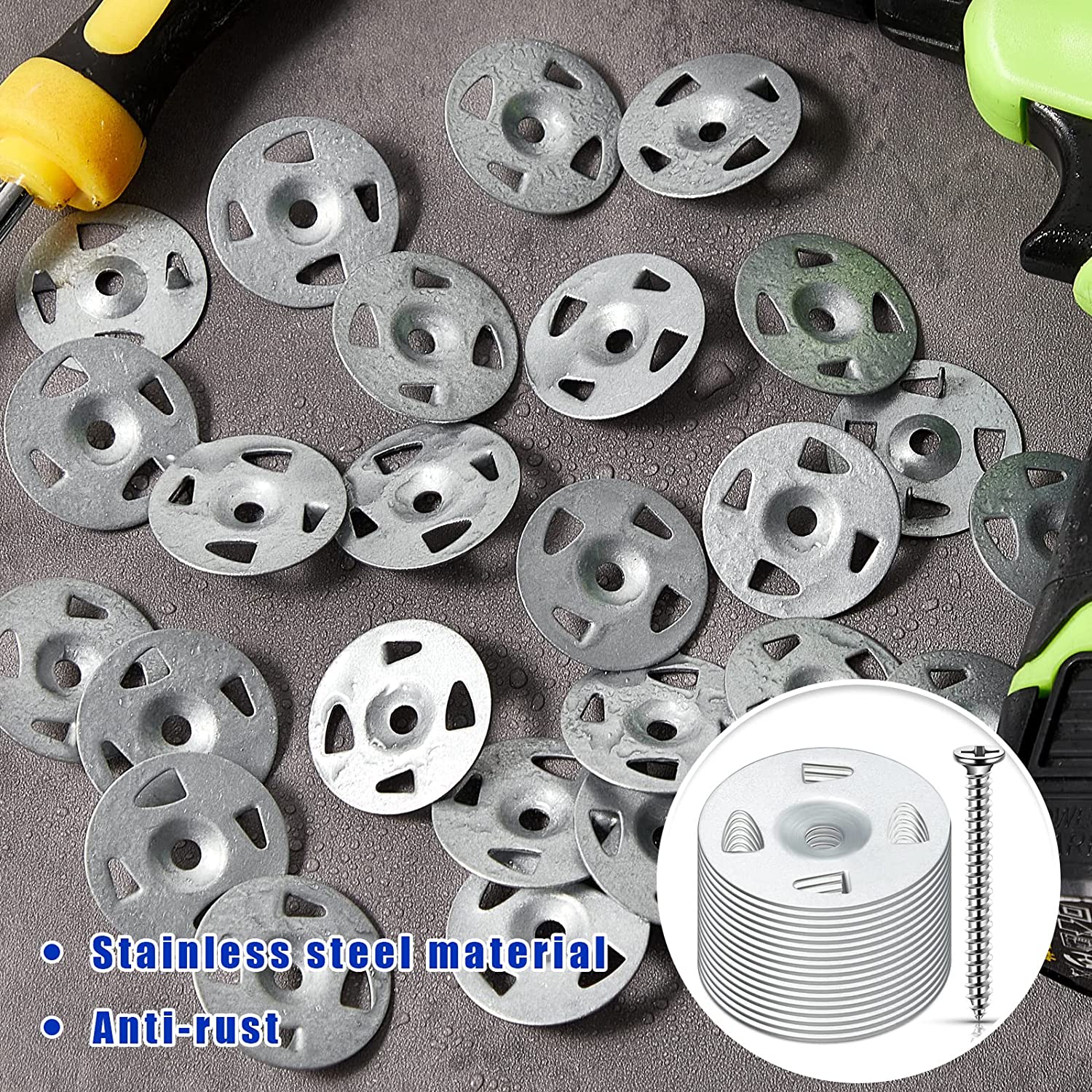 Sufficient Quantity: you will receive 100 pieces of stainless steel washers with a diameter of 1-1/4 inches, and 100 pieces of stainless steel self tapping screws with a size of about 0.14 x 1.57 inches/ 3.5 x 40 mm; The abundant quantity can meet your various use and replacement needs