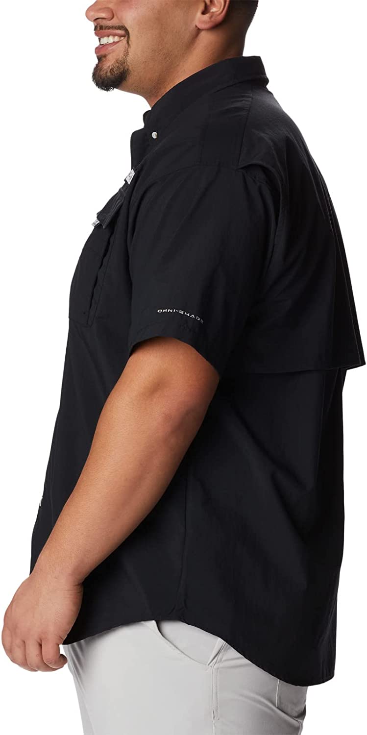 Designed specifically for anglers, this lightweight nylon shirt dries fast, keeps you cool, and protects against UV rays. Mesh-lined back vents make it perfect in hot, humid weather, and tabs let you securely roll up your sleeves. A fishing-ready button-up shirt with a button-down collar. Expect Columbia's best sun protection tech that helps prevent skin damage during long outdoor events. The fabric provides UPF 50 UVA and UVB protection, while the smooth Tactel nylon taffeta fabric is lightweight and dries quickly to keep you cool. Four self-draining pockets at the chest, along with a gear loop, and rod holder keeps things handy while you work on your next lure. This Columbia short sleeve shirt comes in a range of colors and sizes. Extended sizing available. Relaxed Fit. To ensure the size you choose is right, utilize our sizing chart and the following measurement instructions: For the chest, measure at the fullest part of the chest, under the armpits and over the shoulder blades, keeping the tape measure firm and level.