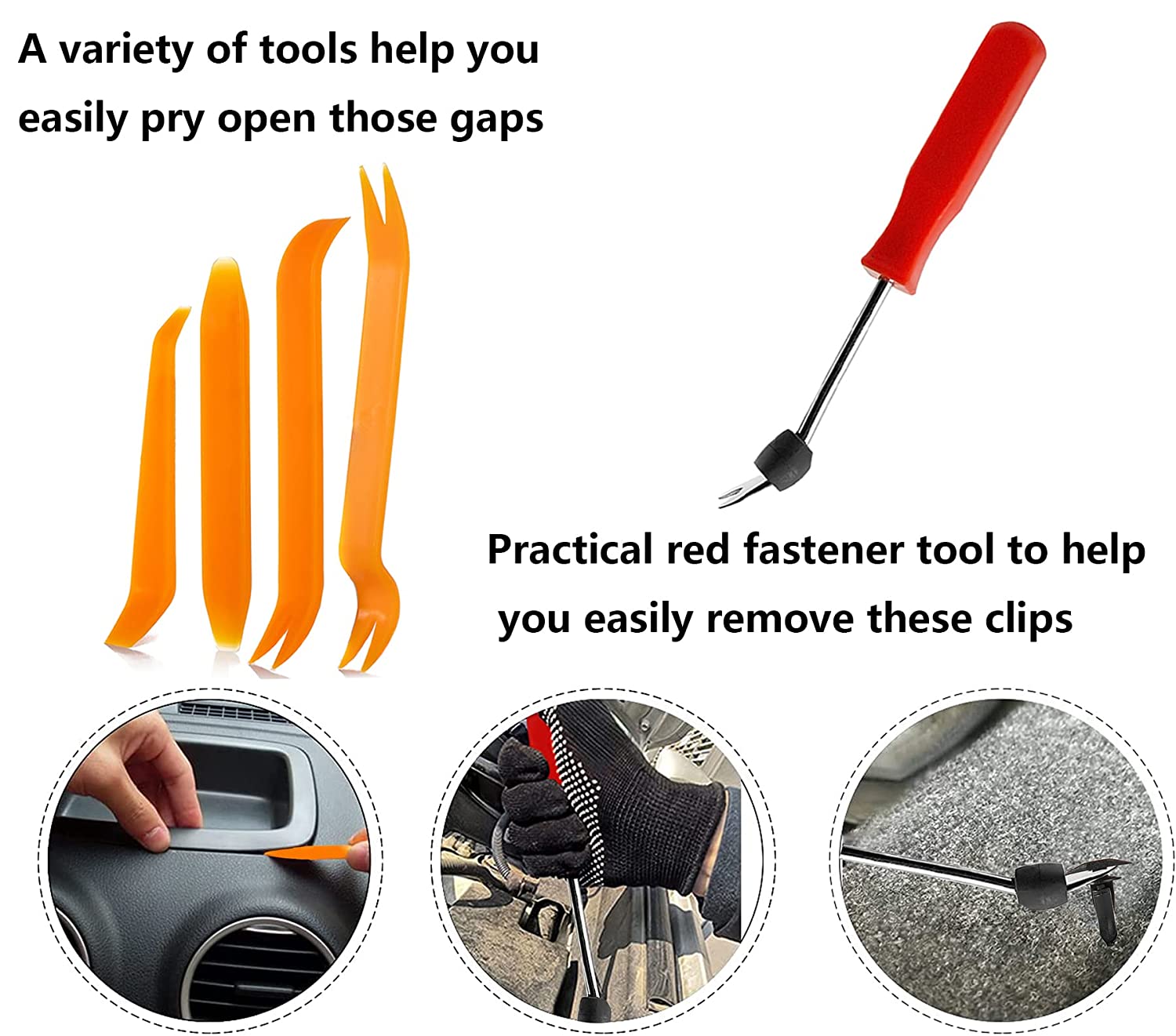 • 【HIGH QUALITY CLIPS AUTOMOTIVE】--The plastic rivets and trim removal tool are made of premium nylon material can be used for a long time. Durability will not damage or break easily during use.