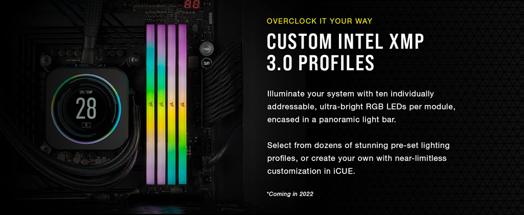 • Custom Intel XMP 3.0 Profiles: Customize and save your own XMP profiles via iCUE to tailor performance by app or task for greater efficiency.