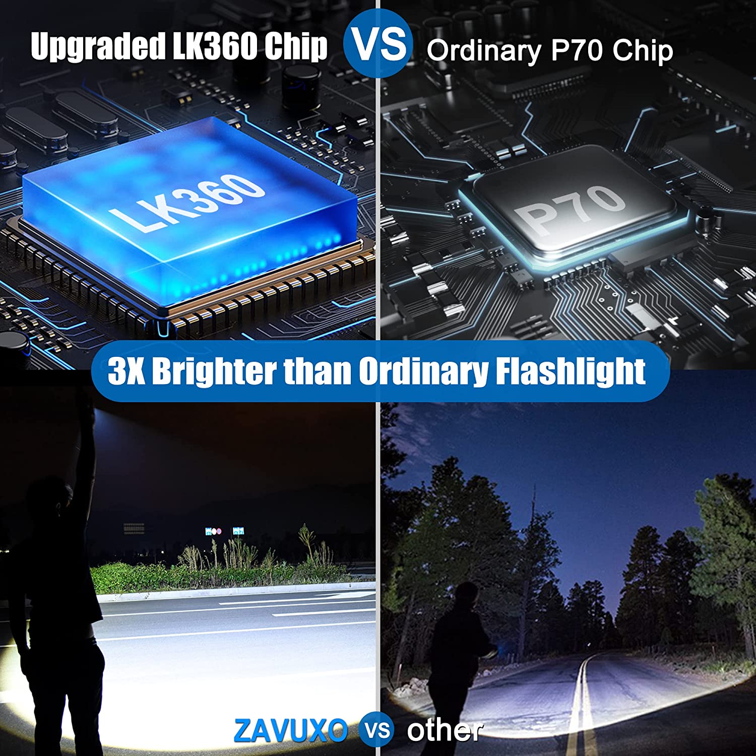 Zavuxo Flashlights High Lumens Rechargeable LED Flashlight, Super Bright Tactical Flashlights 180000 Lumens Handheld Flashlights with 5 Modes, Zoomable, Waterproof Flashlights for Emergencies Camping