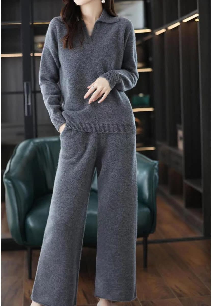 Walnut Casual Wide-Legged Pants Knitted Suit Autumn and Winter Loose Wool Sweater Top High-Waisted Pants Two-Piece Suit (Color : D, Size : S Code)