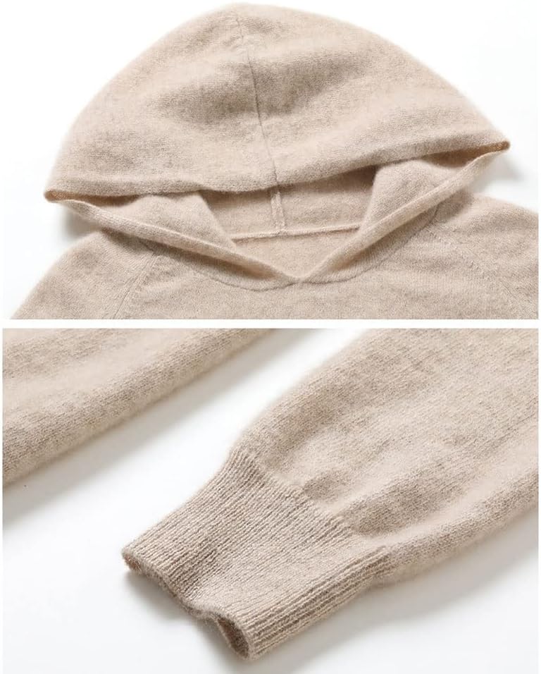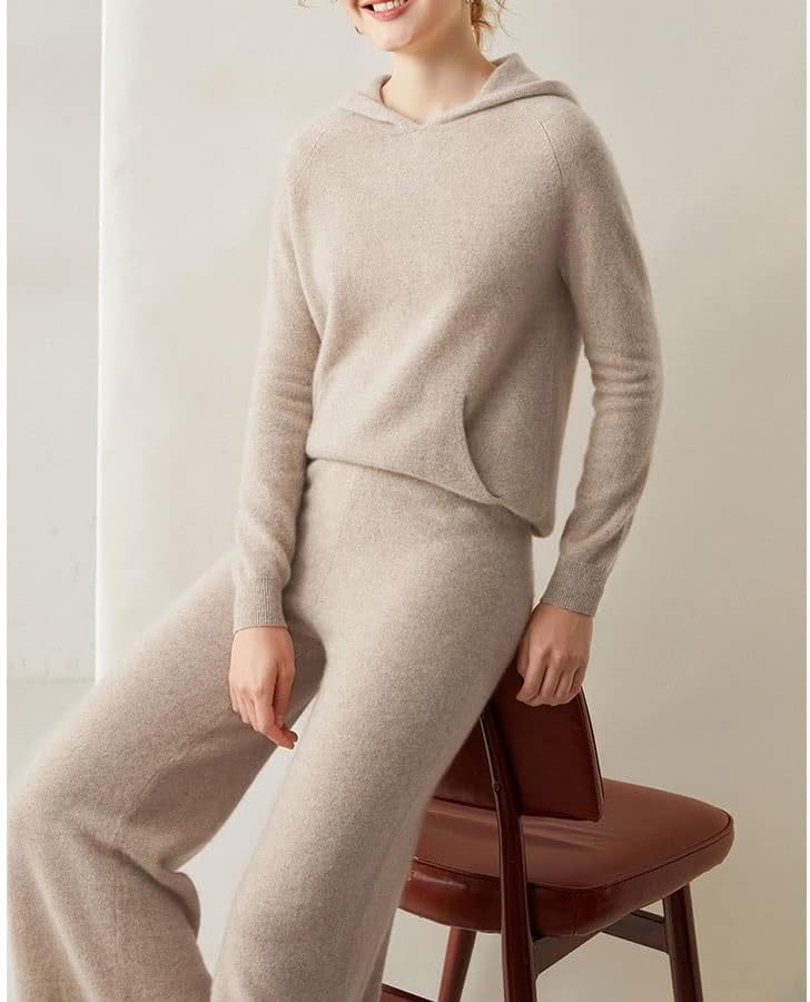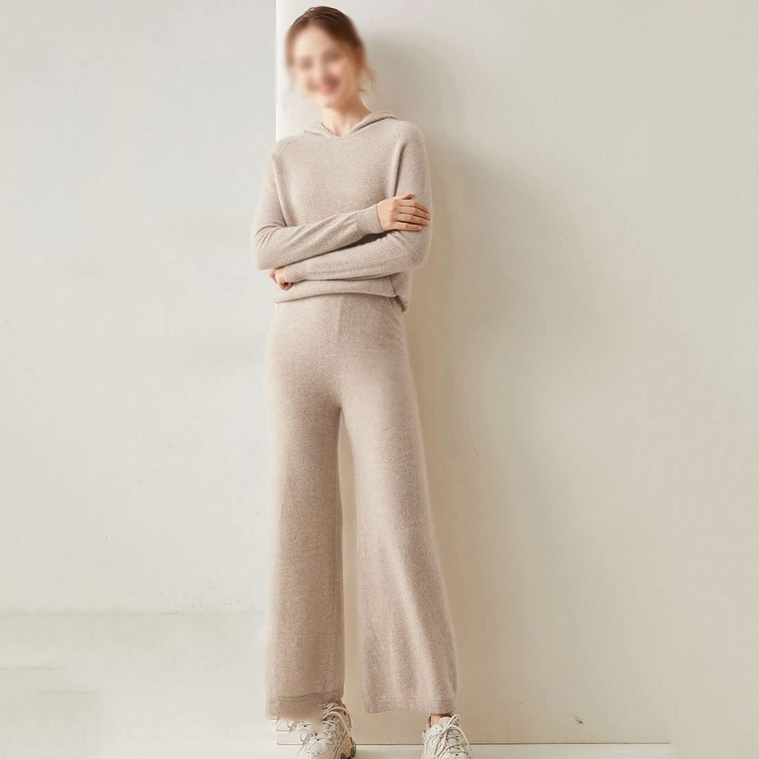 Walnut Two Pieces Cashmere Wool Suits Female Hooded Knit Sweater Set Warm Cashmere Knit Tops and Wide Leg Pant Sets (Color : D, Size : L Code)