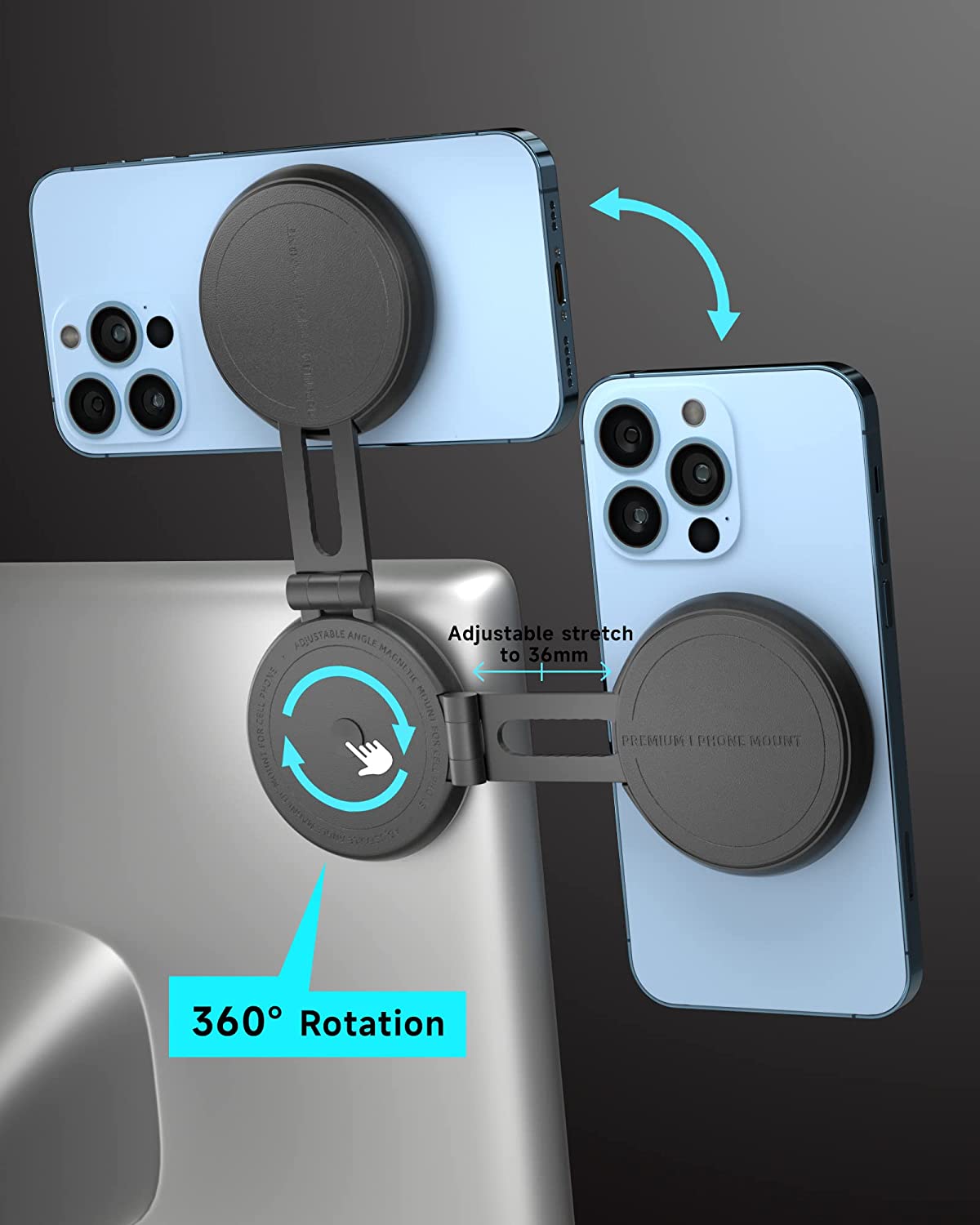 ?【Angle & Length Adjustable】The angle of this car mount is 360 degrees rotatable, Tesla Phone Mount is 135 degrees back and forth reversible, and the length of the premium metal arm can be extended 1.41 inches, easily swivel the display as you wish and adjust it to a perfect view for you. And you can fold it up when it is not in use.