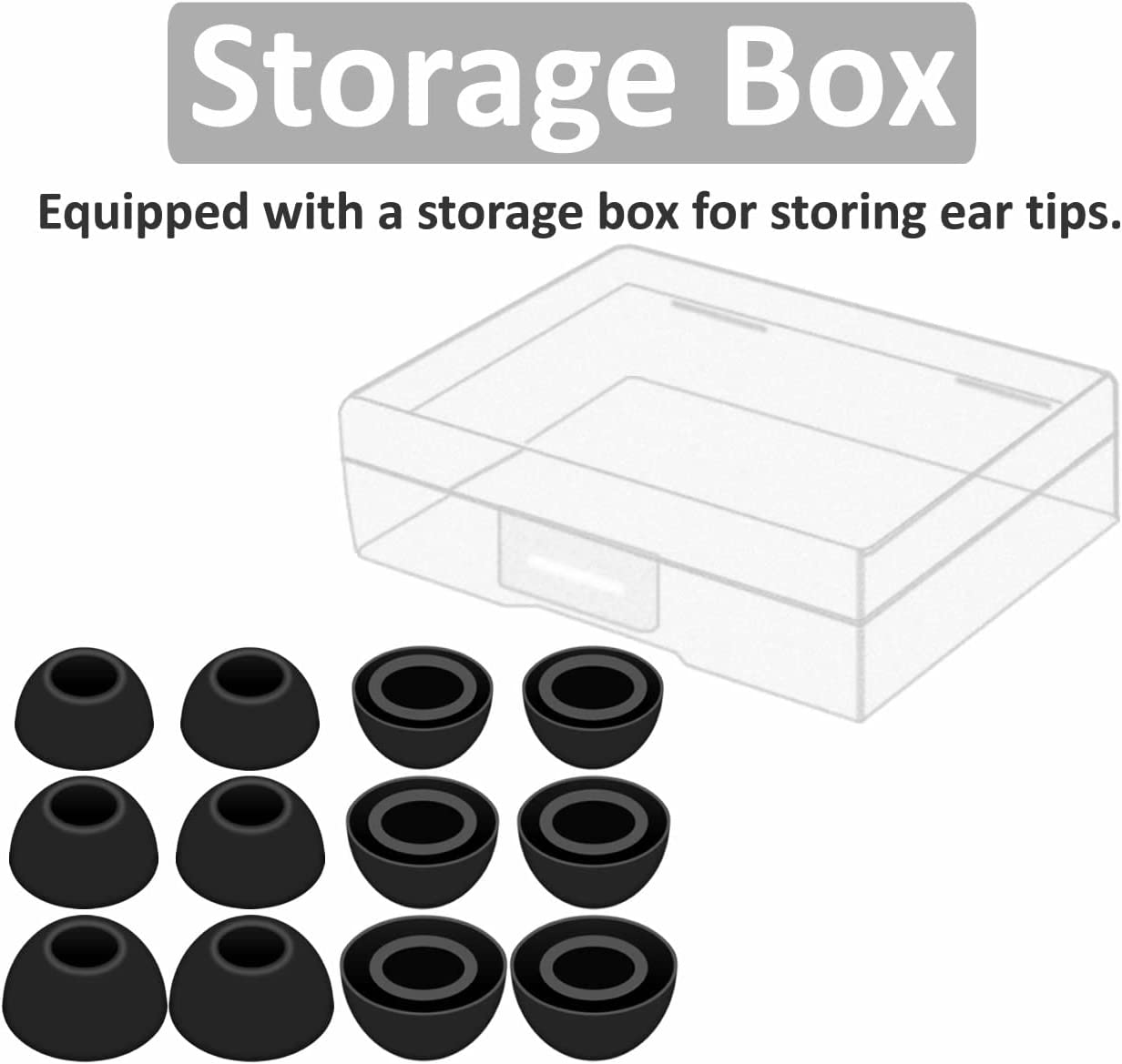 【 Storage Box 】 Equipped with a storage box for storing 6 pairs ear tips ( S/M/L 3 size, 2 pairs per size ), which can well protect unused ear buds from being lost or soiled, ear tips only, earphone and charging case NOT included.