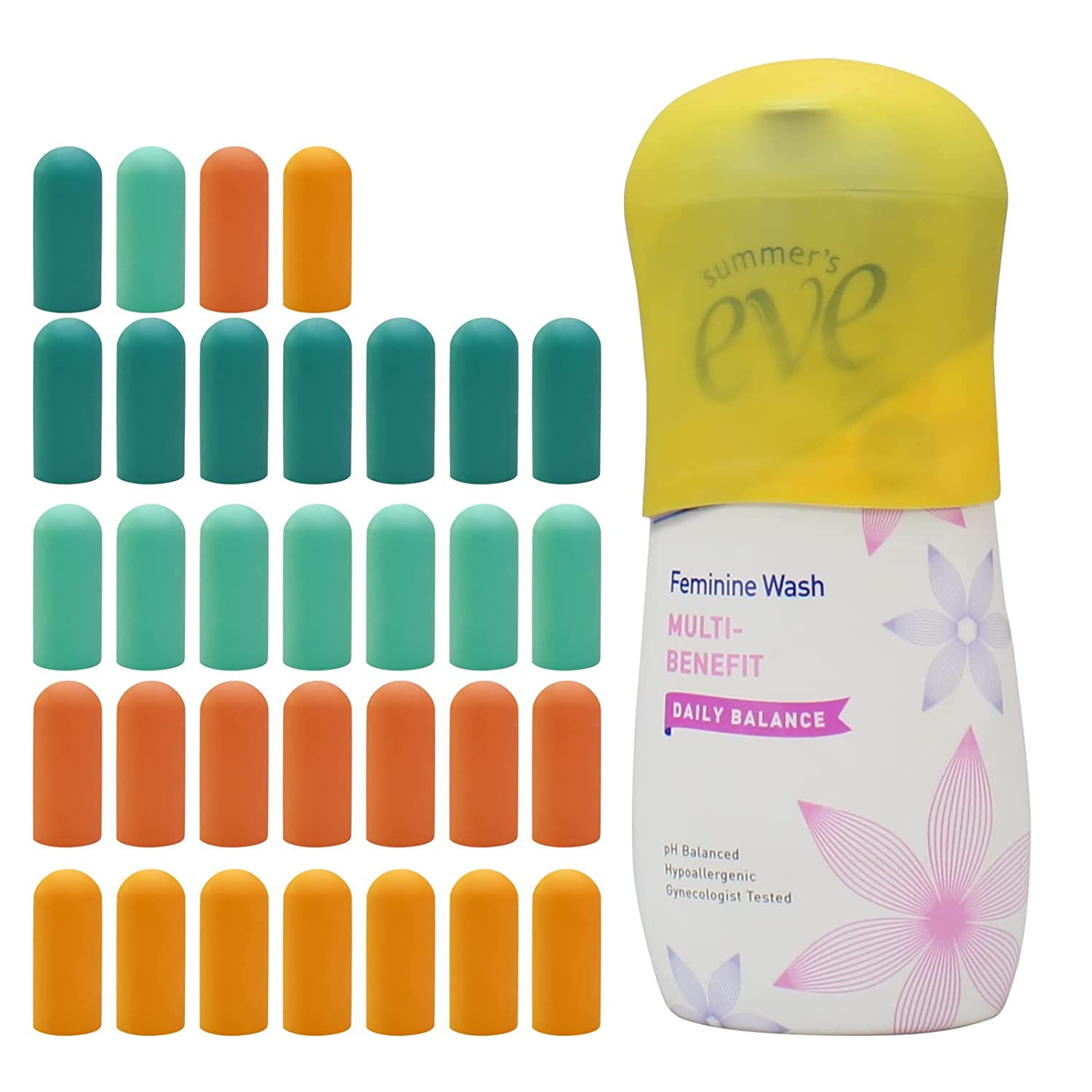 32 Pack Travel Aaccessories - The package includes 8 colorful pieces of elastic sleeves for leak proofing travel. Total enough for you and your family for a trip.