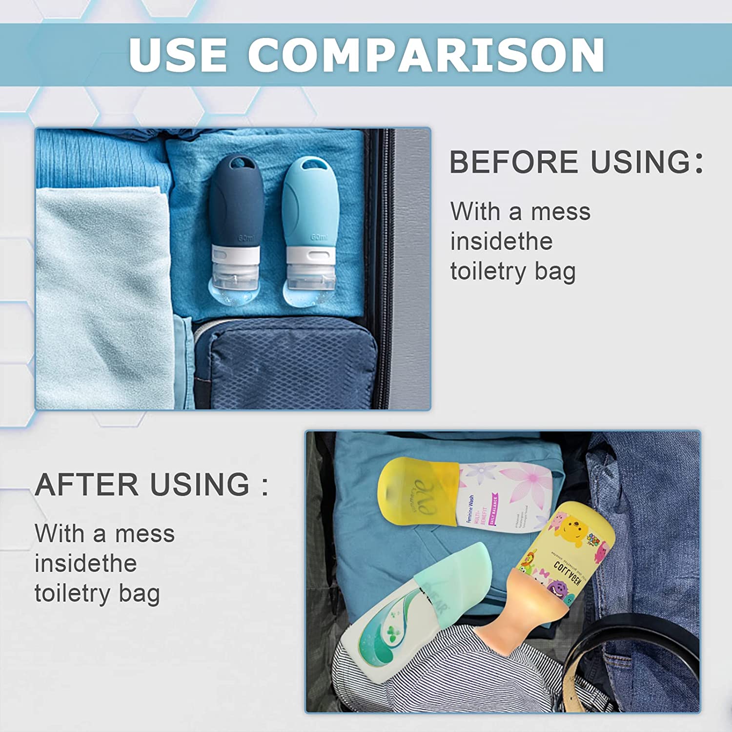 Toiletry Covers for Leak Proofing: This leak proof sleeve help to prevent the lquid leaking in your bag or cloth. Fit for most travel containers in luggage, such as shampoo bottles, conditioner, hairspray, lotion etc.