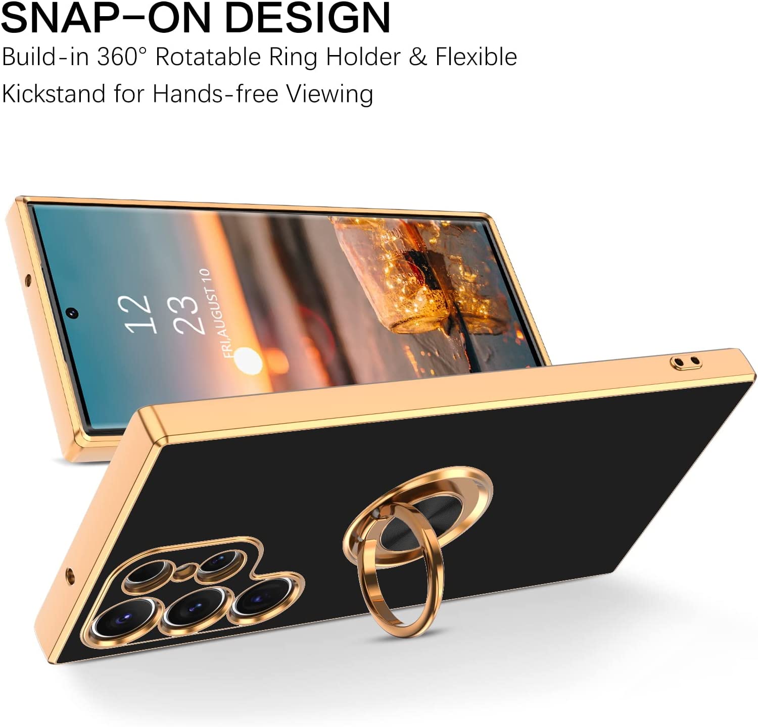 BENTOBEN Compatible with Samsung S23 Ultra Case with 360° Ring Holder, Shockproof Slim Kickstand Magnetic Support Car Mount Women Men Protective Phone Case for Samsung Galaxy S23 Ultra, Black/Gold