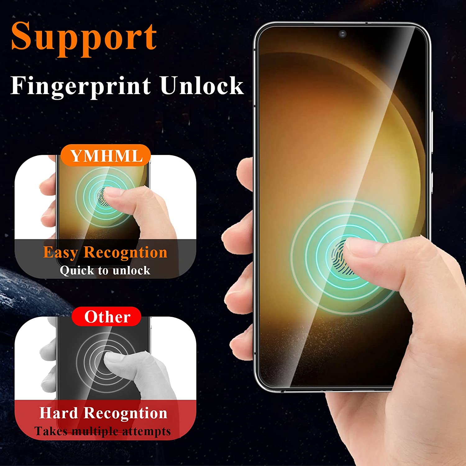 Support Fingerprint ID: Privacy screen protector for galaxy S23 perfectly supports fingerprint reader, unlock speed as fast as 0.01s, uses the latest highly responsive touch technology and advanced Nano glue make touch responsed quickly.