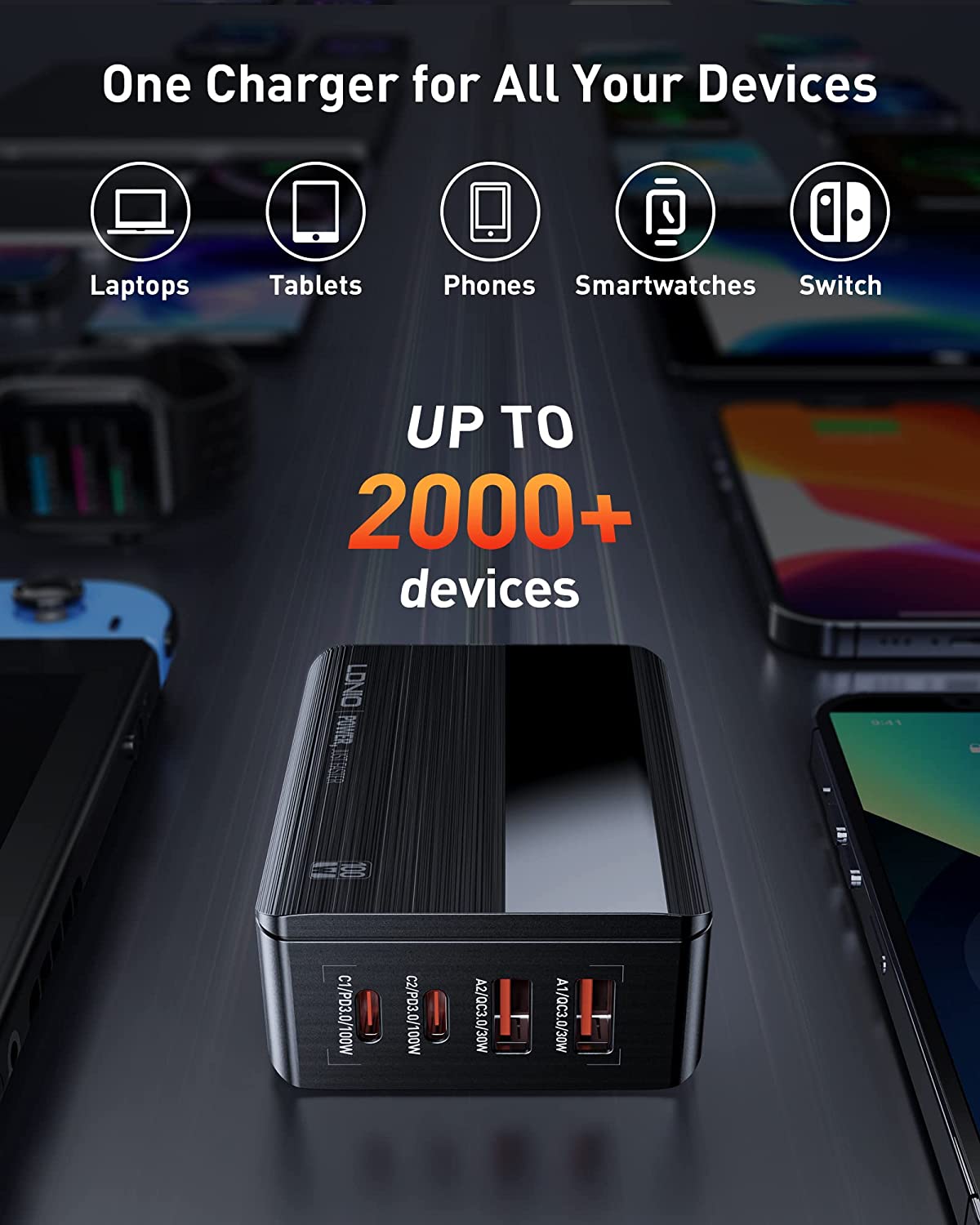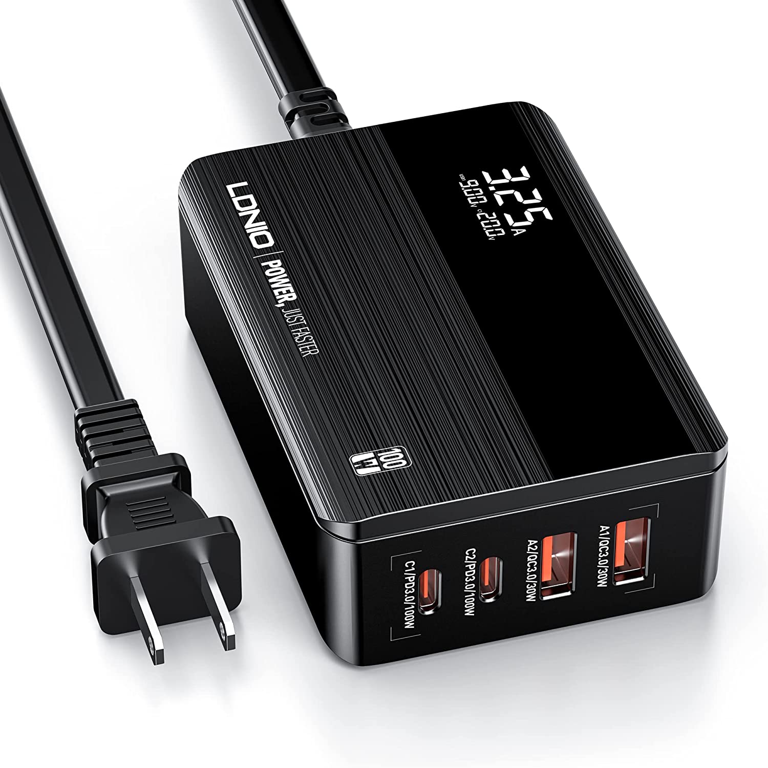 USB C Charger, LDNIO 100W PD Fast GaN Charger with LED Display, 4-Port USB C Charging Station with 2USB-C, 2USB for MacBook Pro/Air, iPad, Laptops, iPhone, Samsung Galaxy, Steam Deck and More