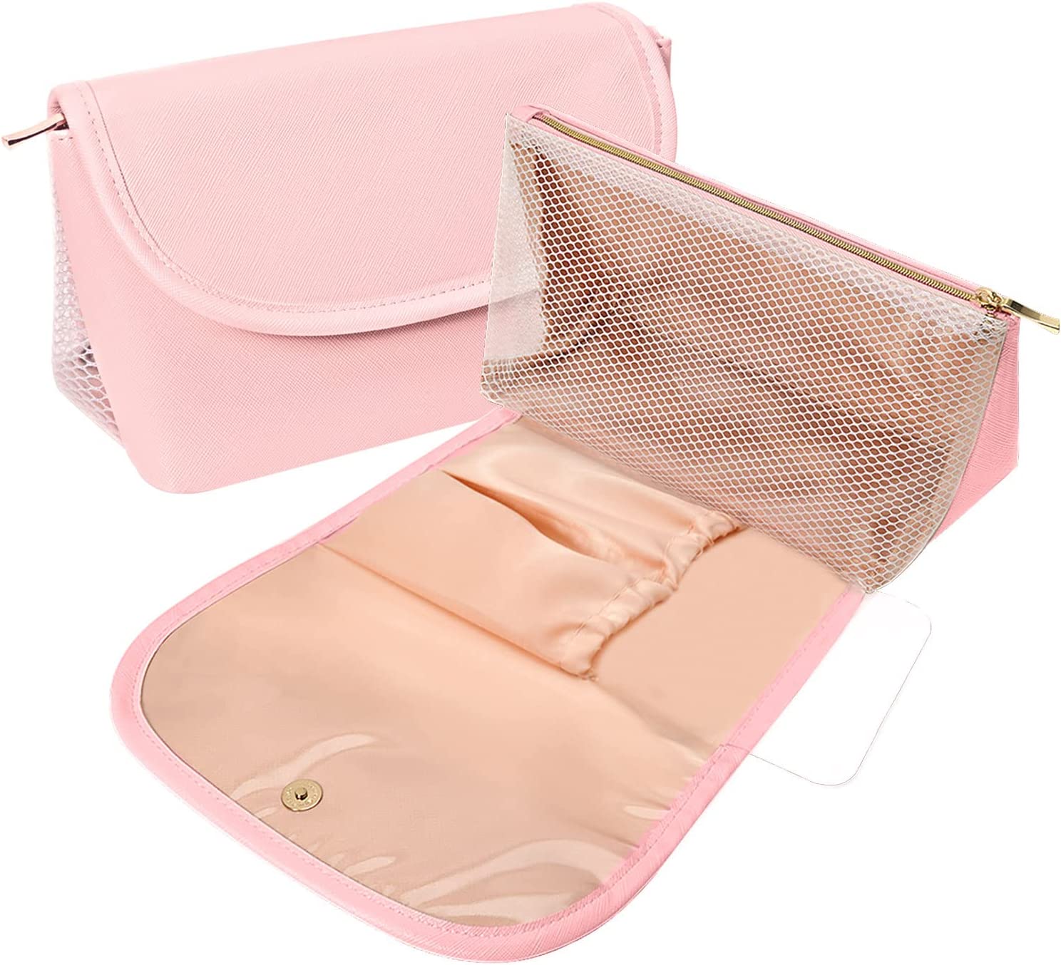 ?WATERPROOF ,STURDY AND DURABLE : Travel makeup bag is made of high quality premium soft and comfortable PU leather, easy to clean and waterproof internal pvc materials;
