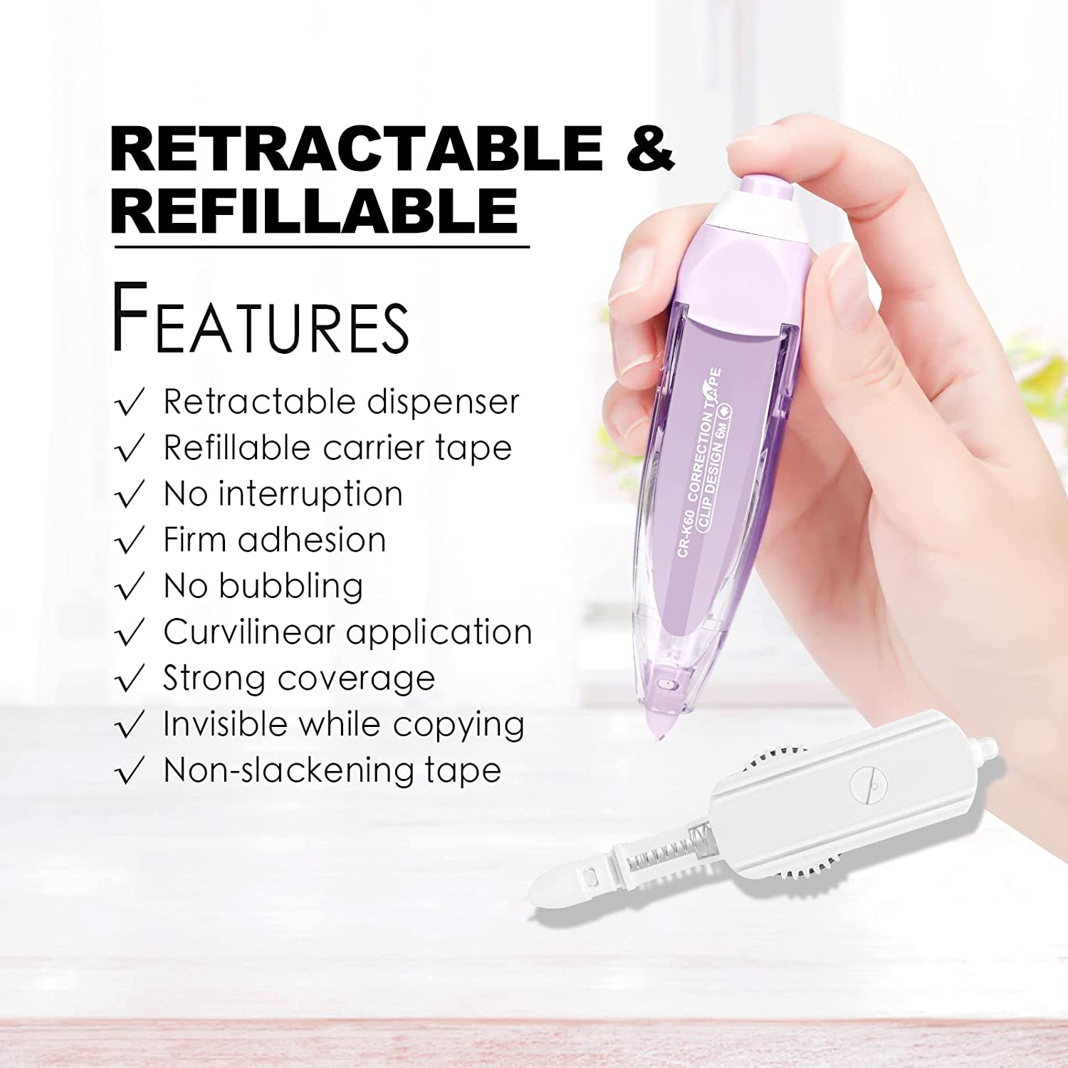- REFILLABLE - Designed in the shape of a pen, get your mistakes corrected with PEONYELF's white out tape. With our refillable carrier tape, you can easily refill the applicator without having to buy another whole one.