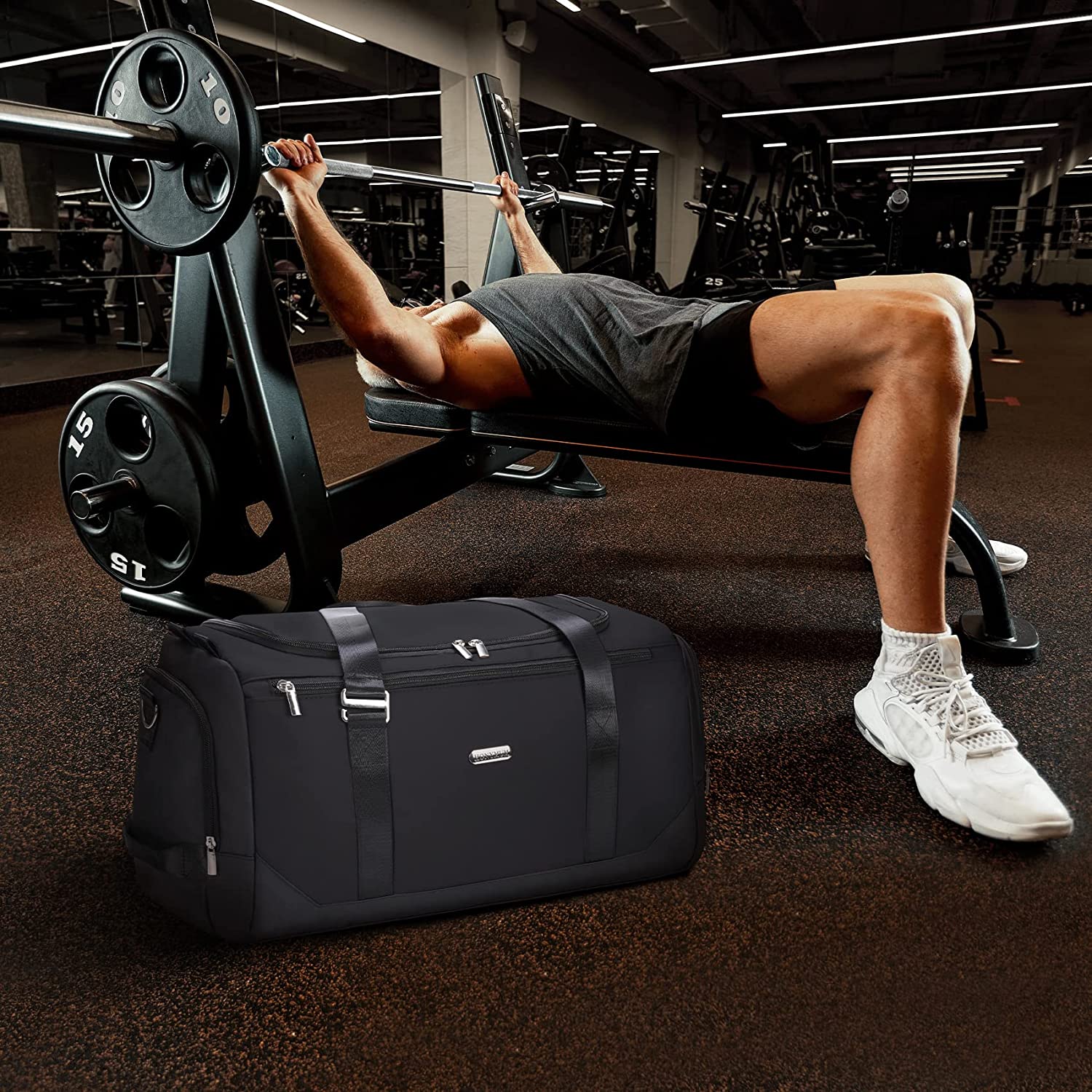 【Premium Material Mens Duffle Bag 】 ①Our mens travel bag is made of high density polyester,waterproof & wrinkle-free,durable& tear-resistant, it weighs only 1.5 pounds,is very lightweight.②Sturdy handles and shoulder straps.③High Quality Double zipper,smooth and wear-resistant.