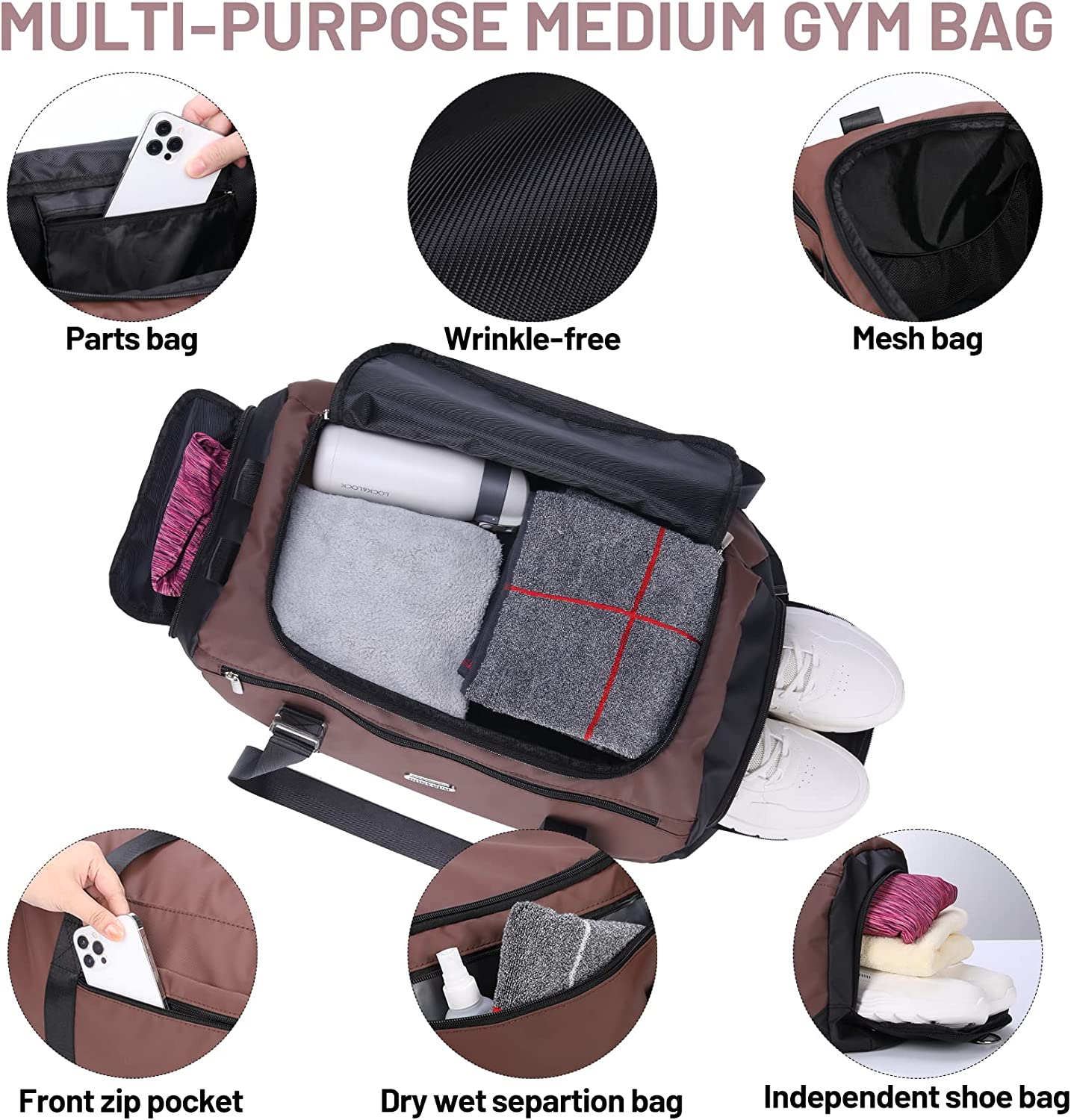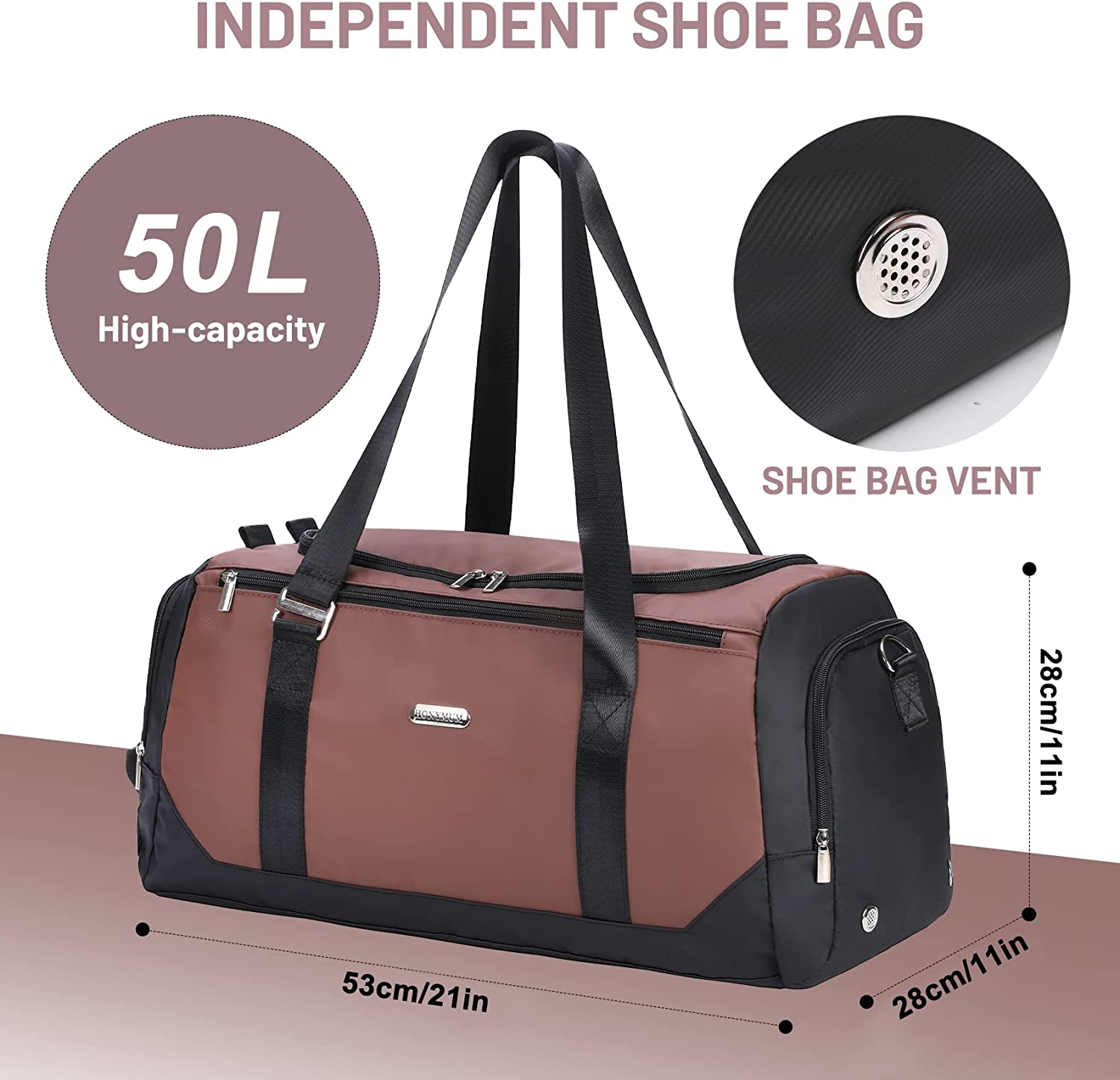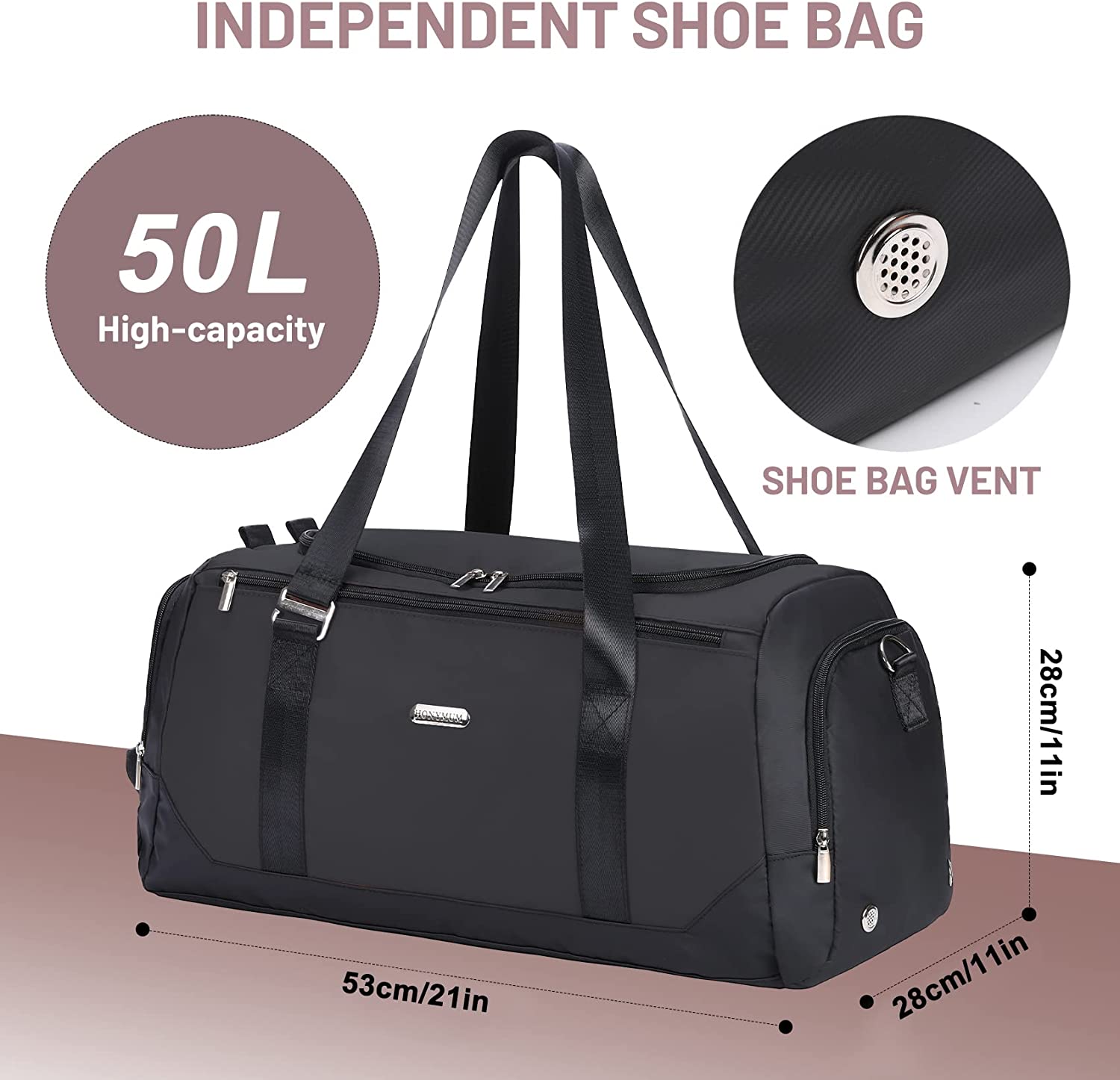 【With Shoe Compartment & Wet Pocket】HONYMUM travel bag includes a separate compartment for your shoes.The dry and wet separation gym bag can help you separate dry and wet items. It is a perfect reliable companion duffle bag for Sports and airplane.