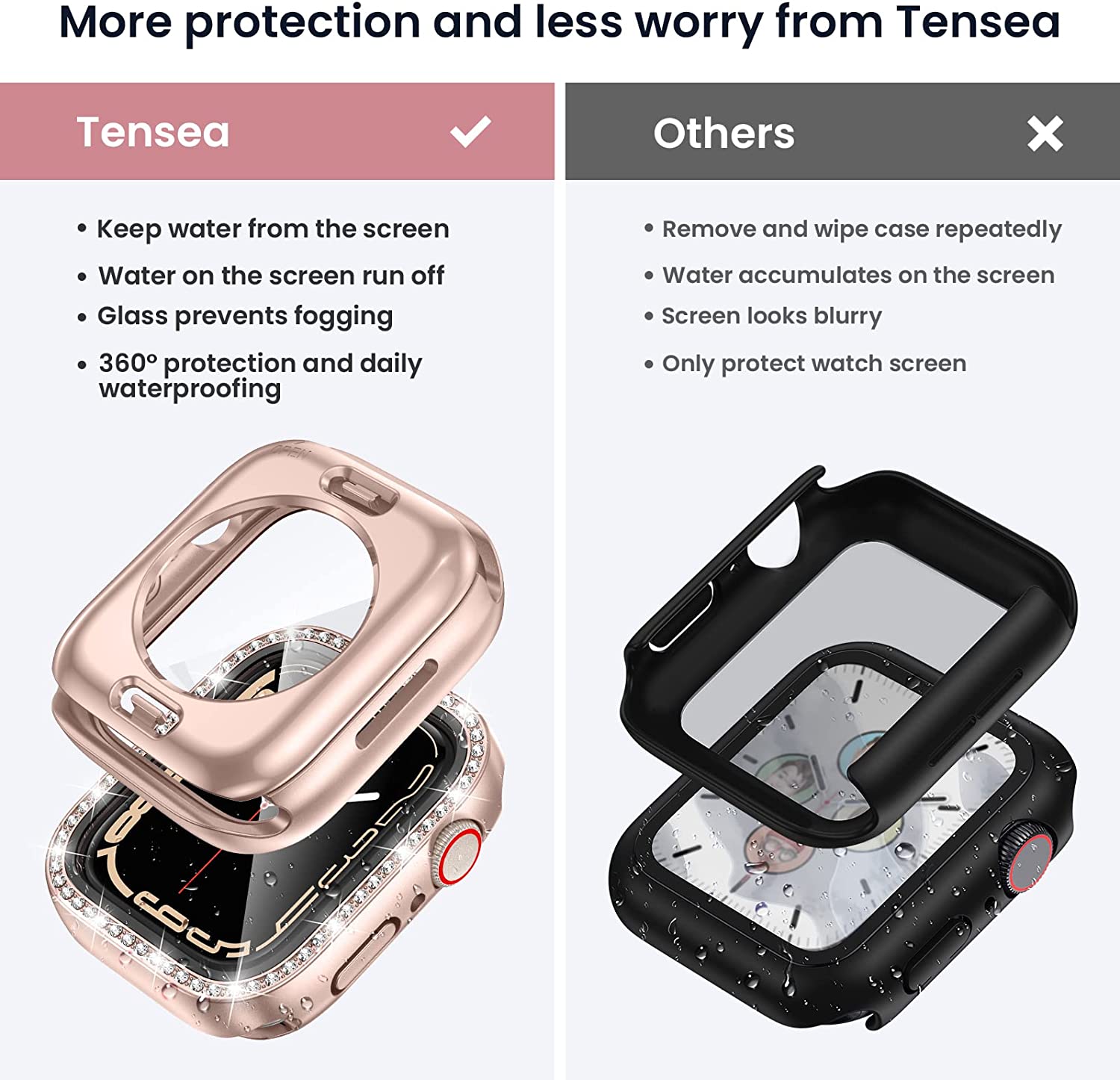 Tensea [2 in 1] for Waterproof Apple Watch Screen Protector Series 8 7 41mm Accessories, iWatch Hard Diamond Bumper Case Built-in Tempered Glass Film, Front & Back Bumper, Bling Face Cover Women