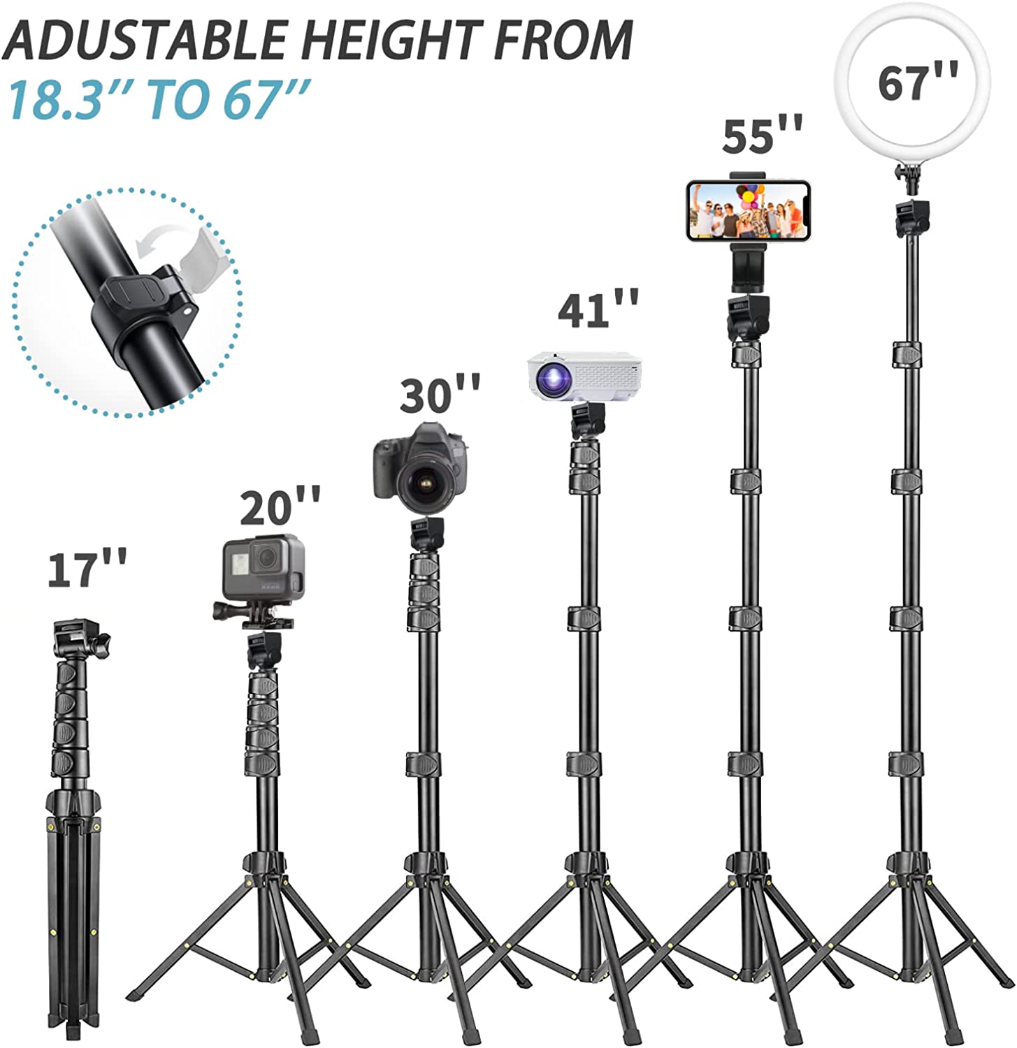 67" Phone Tripod, Extendable Tripod with Wireless Remote & Cell Phone Holder, Cell Phone Tripod Perfect for Selfies, Video Recording, Live Streaming, Compatible with Smartphone & Camera