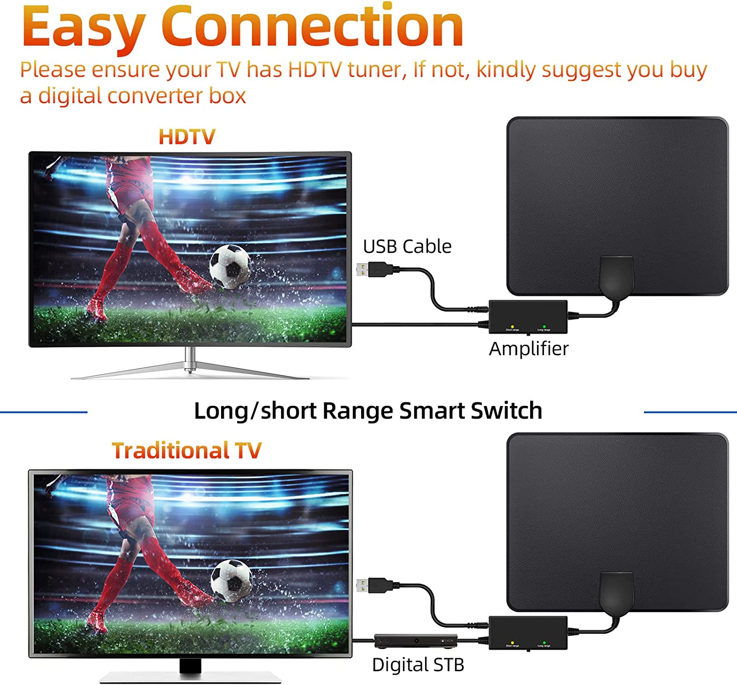 • 【Clear Pictures and Sounds Quality】 : Our antenna tv digital hd indoor outdoor added new technology of cellular and FM signals, which makes you can pick up CRYSTAL PICTURES and receive STABLE SIGNALS in your bedroom, living room, game room, garden and RV etc, just enjoy the TV entertainment with your family!