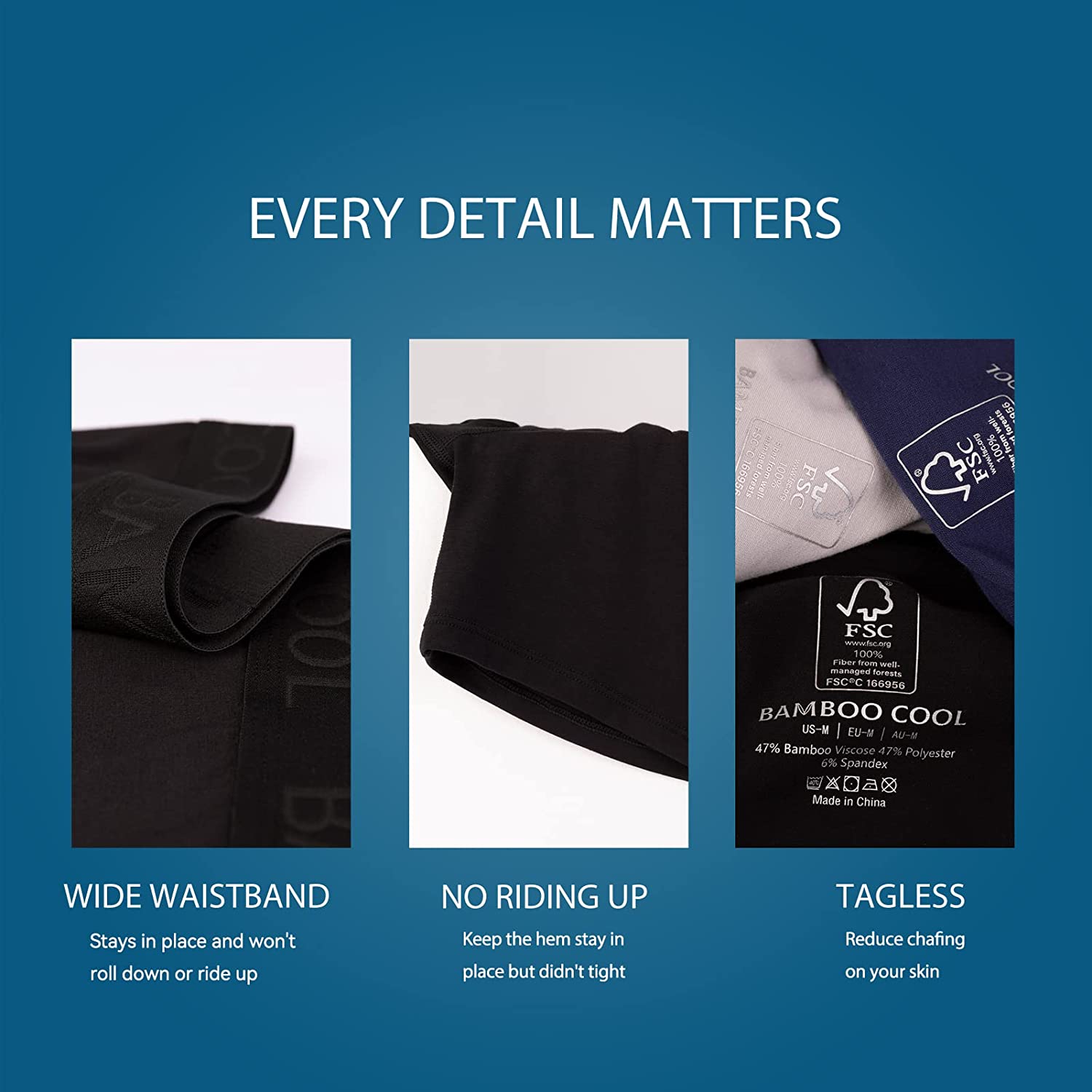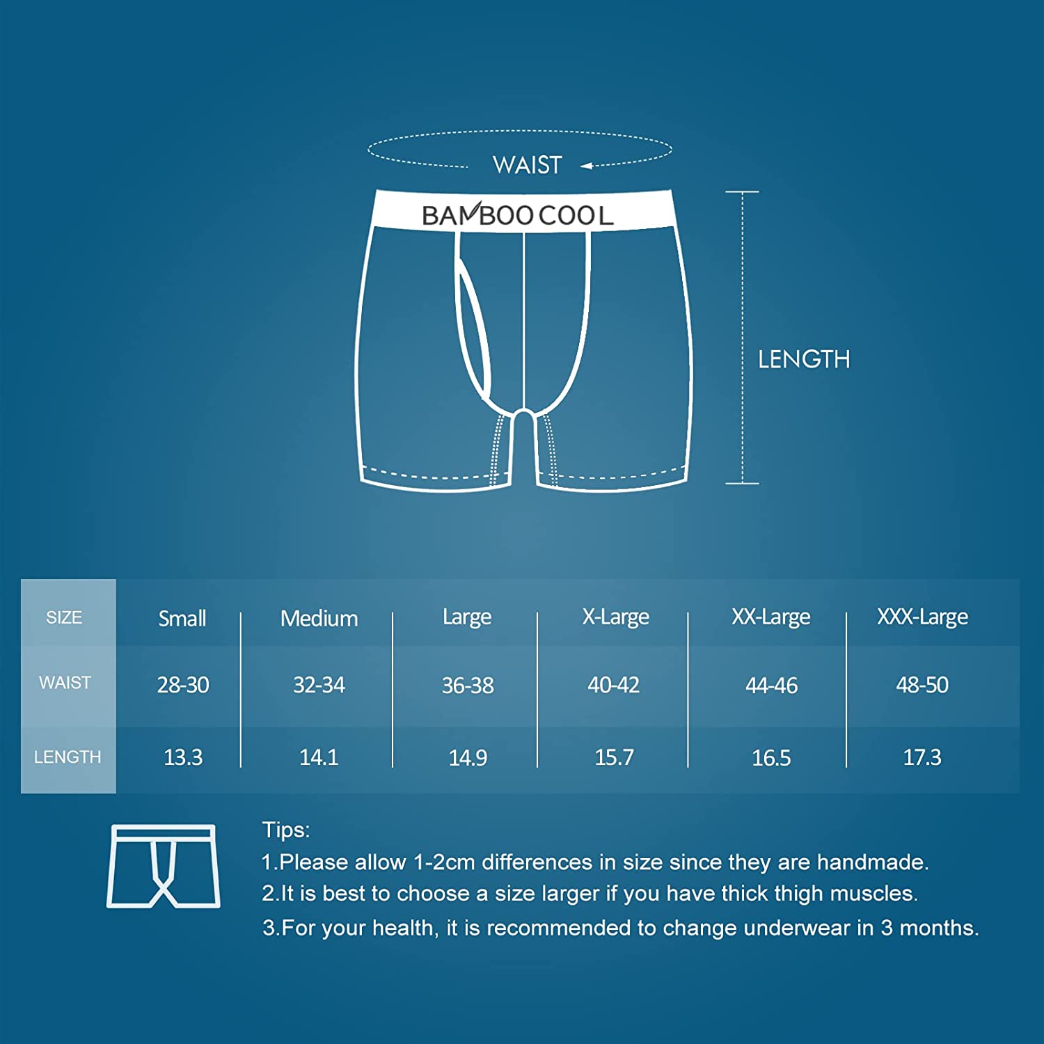【HIGH-QUALITY MATERIAL】:Our men's boxer briefs, made from 46% bamboo Viscose,46%polyester,8%spandex , feel cool on the skin and silky to the touch, which can keep you feeling comfortable and fresh all day long.