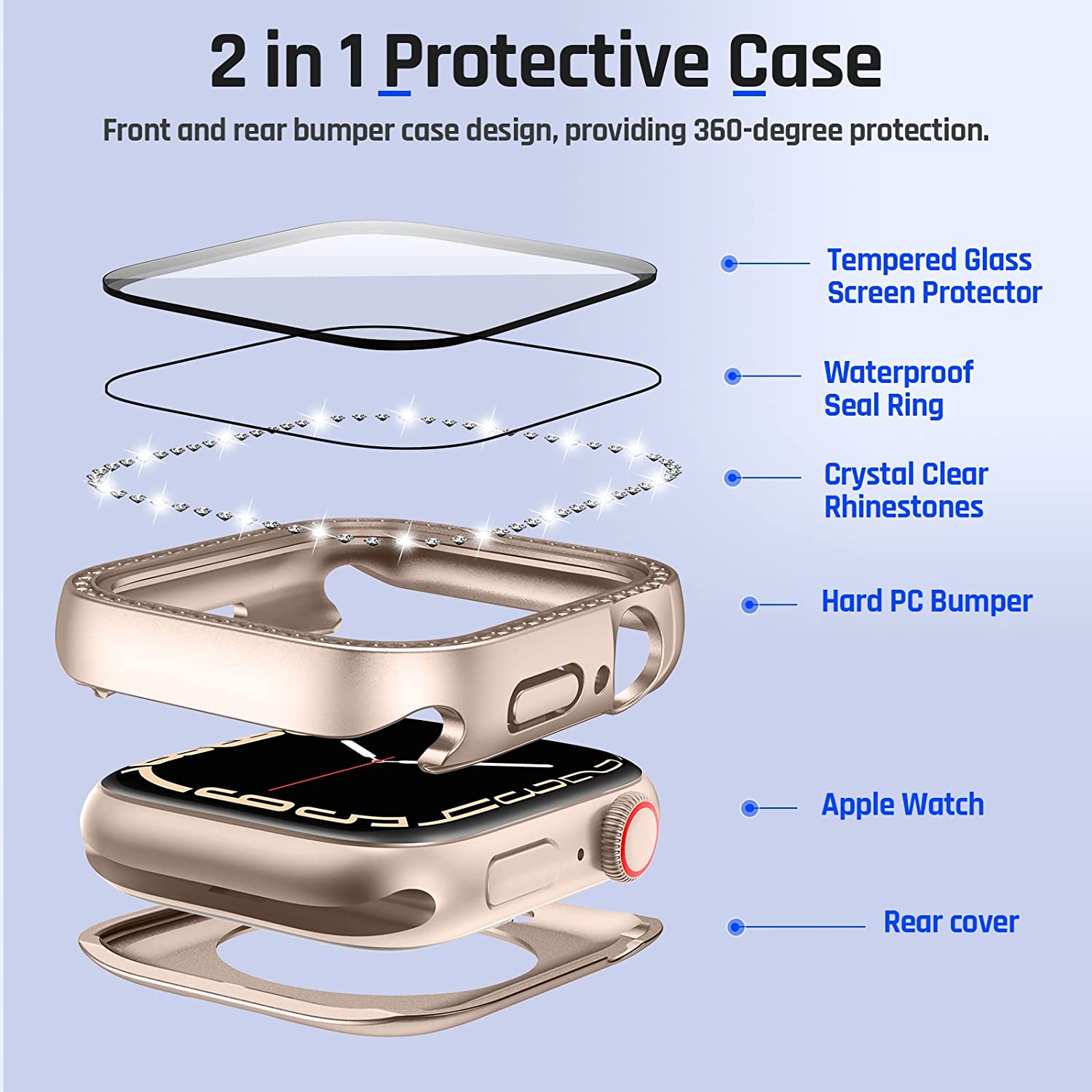 【Premium Bling Covers】 This apple watch case 44mm is inlaid with glitter rhinestones, matchs your watch perfectly, will give you get many compliments. Fashionable & durable, perfect for work and dressy occasions, also a best gift for your friends, couples or families. Like Party, Valentine’s day, Thanksgiving Day, Wedding Anniversary, Mother's Day, Birthday, Christmas etc.