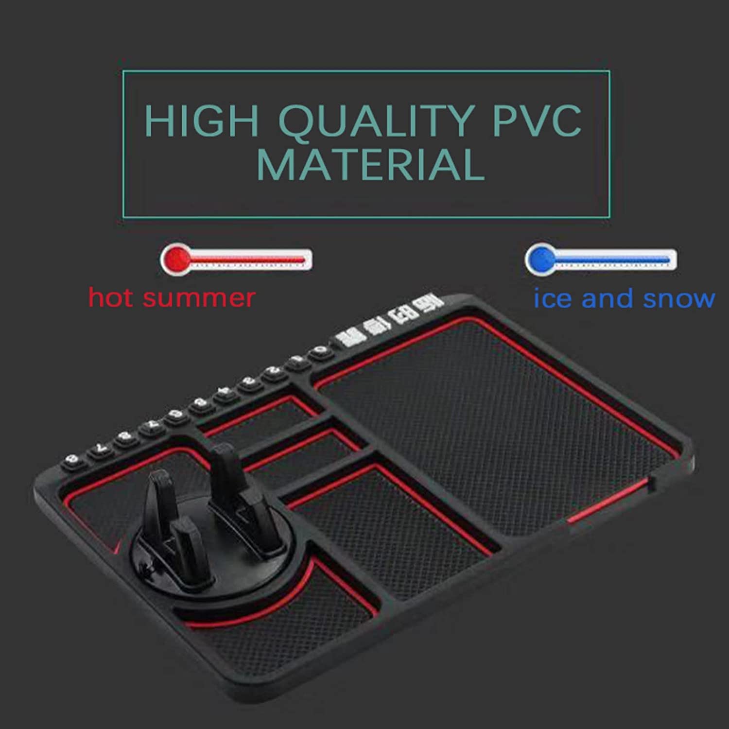 - 【360 Degree Rotating Mobile Phone Holder 】Mobile phone holder on this non-slip multifunctional phone pad for car can be rotated 360 degrees, whether it is horizontal or vertical,non-slip phone pad for car can be adjusted at will to meet your different vision.The non slip phone pad 4 in 1 for car has many compartments,which can store many items in the car: change,car keys,perfume holders,ornaments, etc.