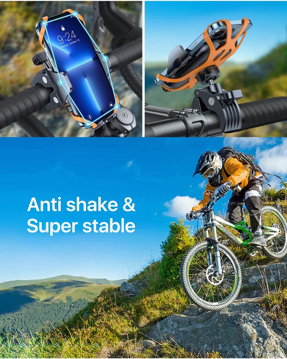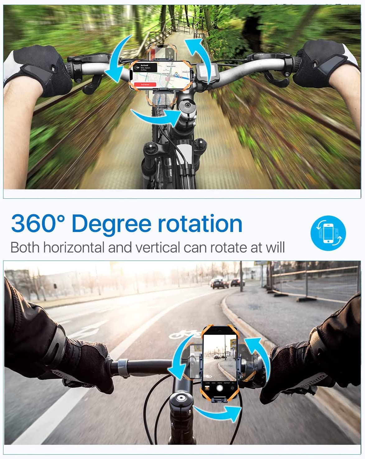 The portable stand of this bike is equipped with silicone mat to prevent damage and vibration of the phone. When riding a bicycle, the motorcycle's mobile stand can perfectly fix the cell phone