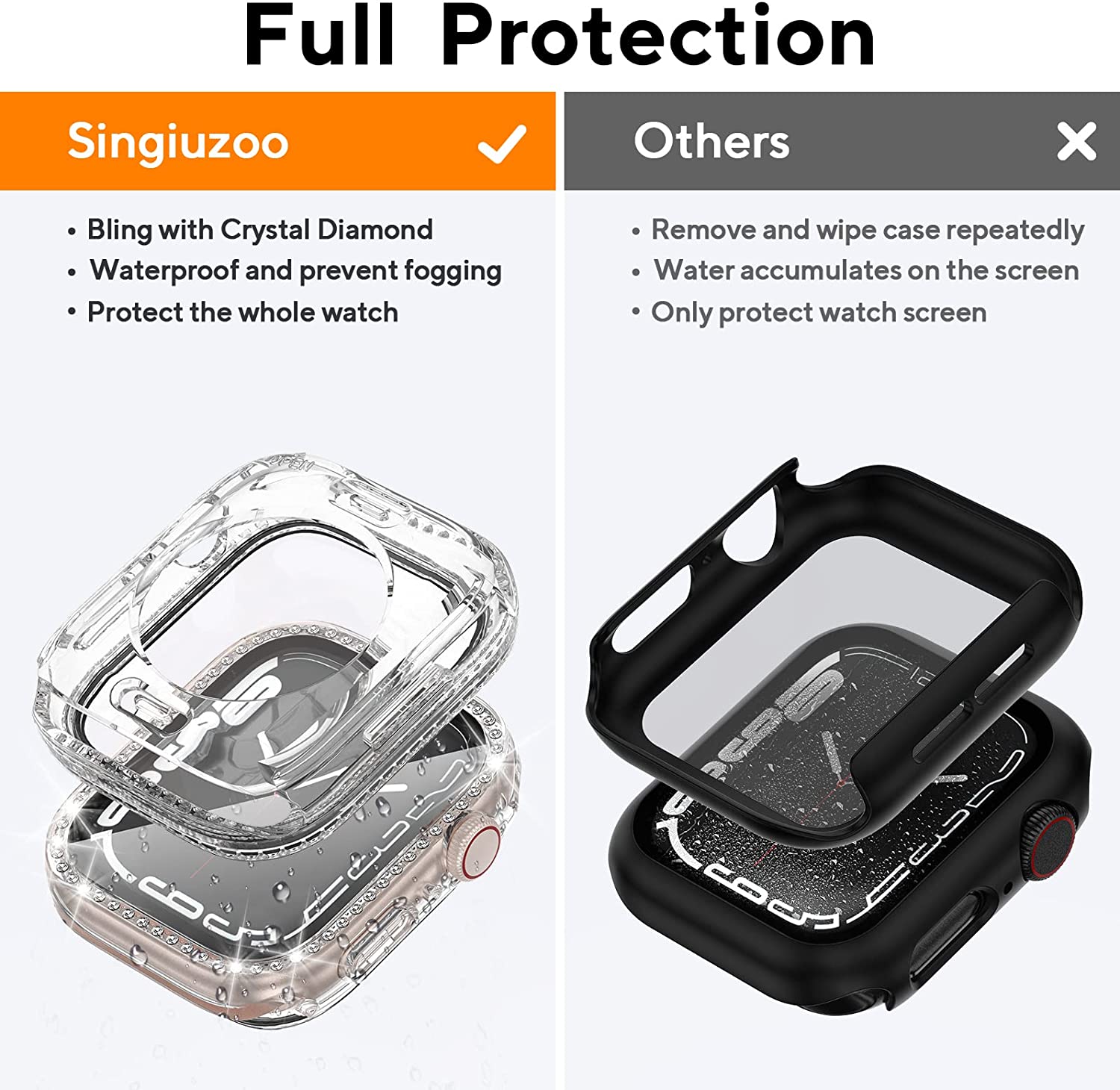 【For 41mm】This bling waterproof apple watch case with back cover is designed for Apple Watch Series 8 / 7 41mm. (Please confirm the size by checking the size mark on the back of the watch.)