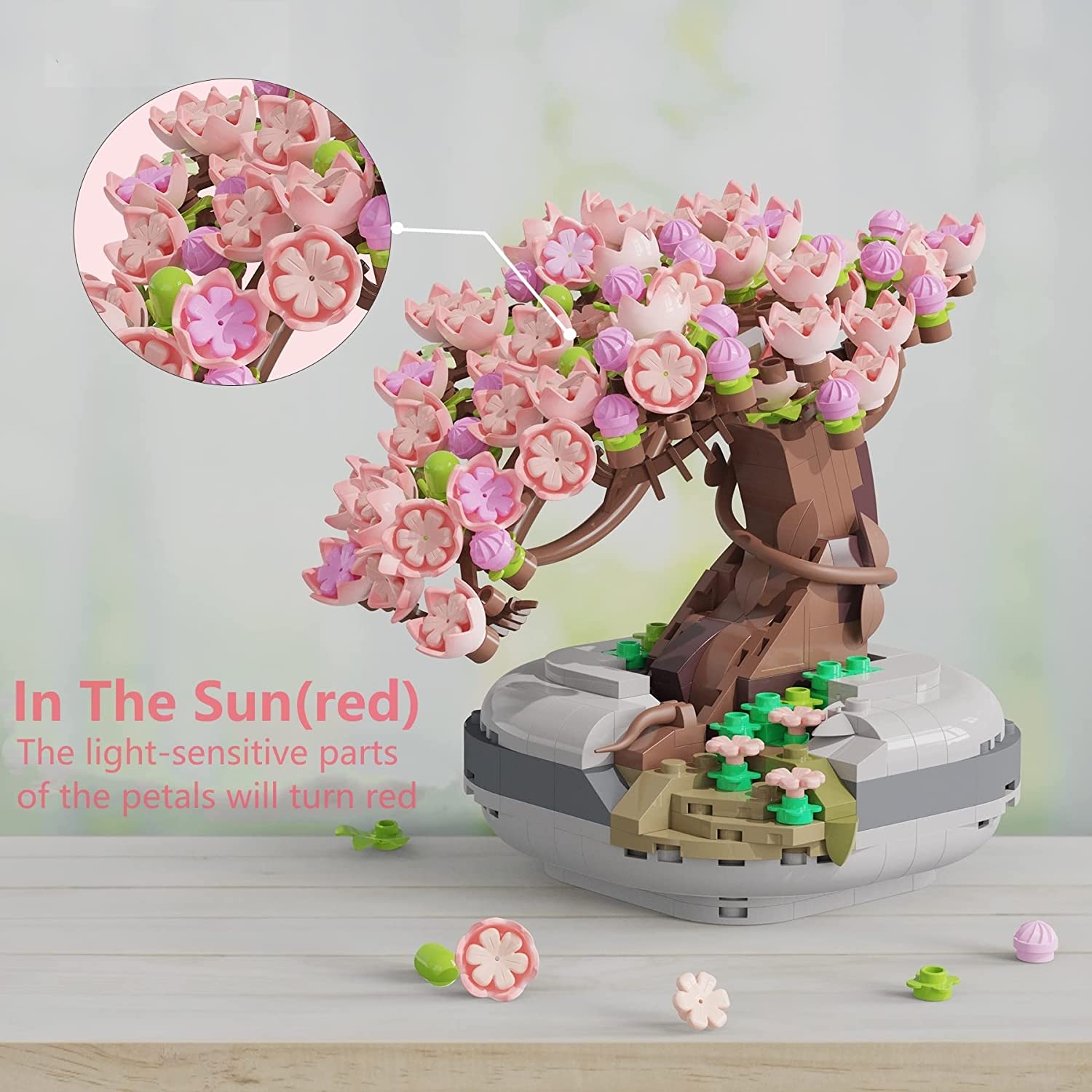 ? Unique building blocks: The sakura tree flowers use ultraviolet light sensitive parts, which can change from white to pink in the sun. It shows the scene of pink cherry blossoms in different periods. You can take it to the sun and observe its beauty from all angles.