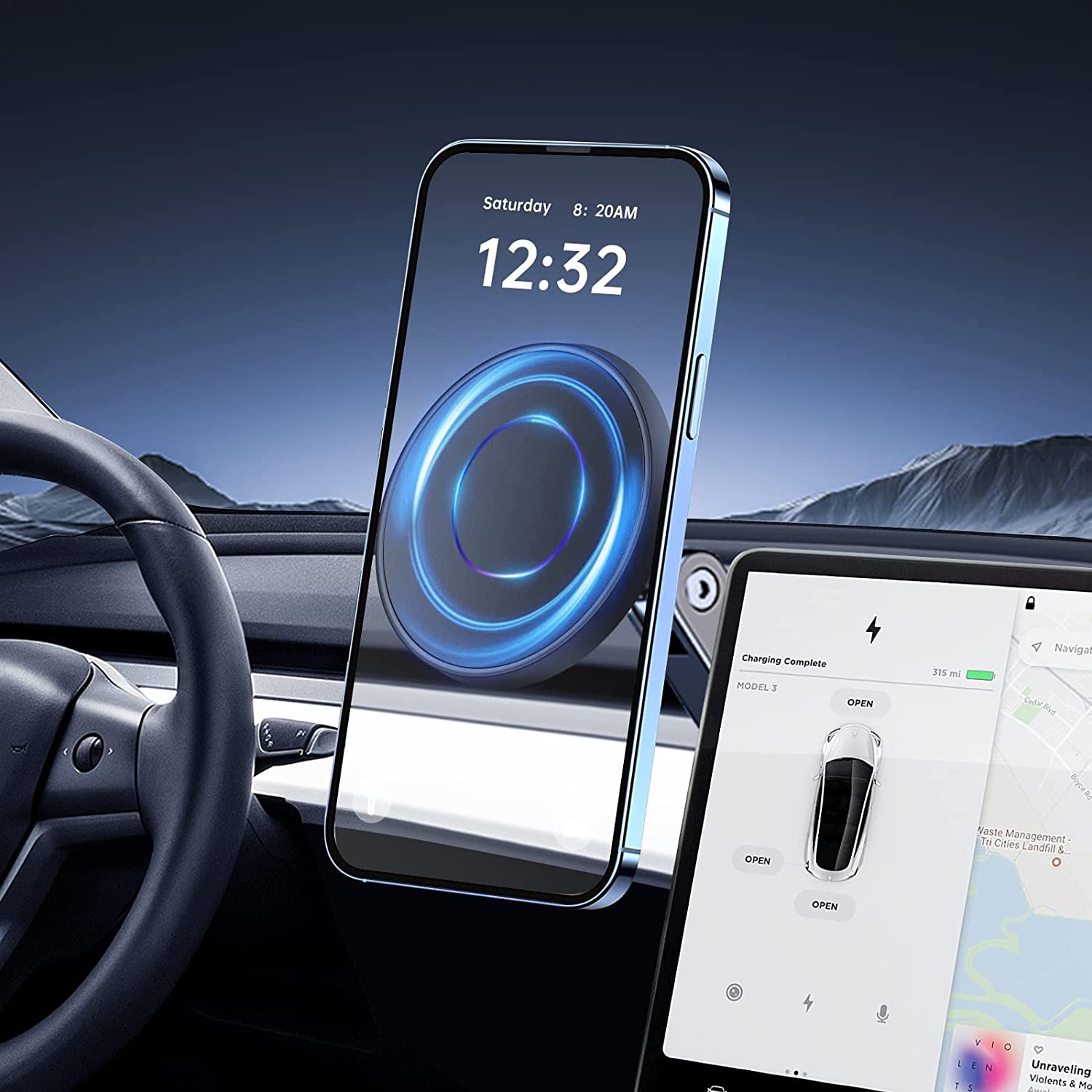 • 【More Mounting Options】This tesla iphone mount for tesla model 3 accessories and tesla model y accessories, Easy to rotate, Fold and hide, Horizontal and vertical adjustment, Fully adjustable design, 360-degree rotation, Suitable for your multi-angle use, And can be installed on the steering wheel/dashboard Multiple locations behind the panel/center console without obstructing the line of sight for safer navigation.