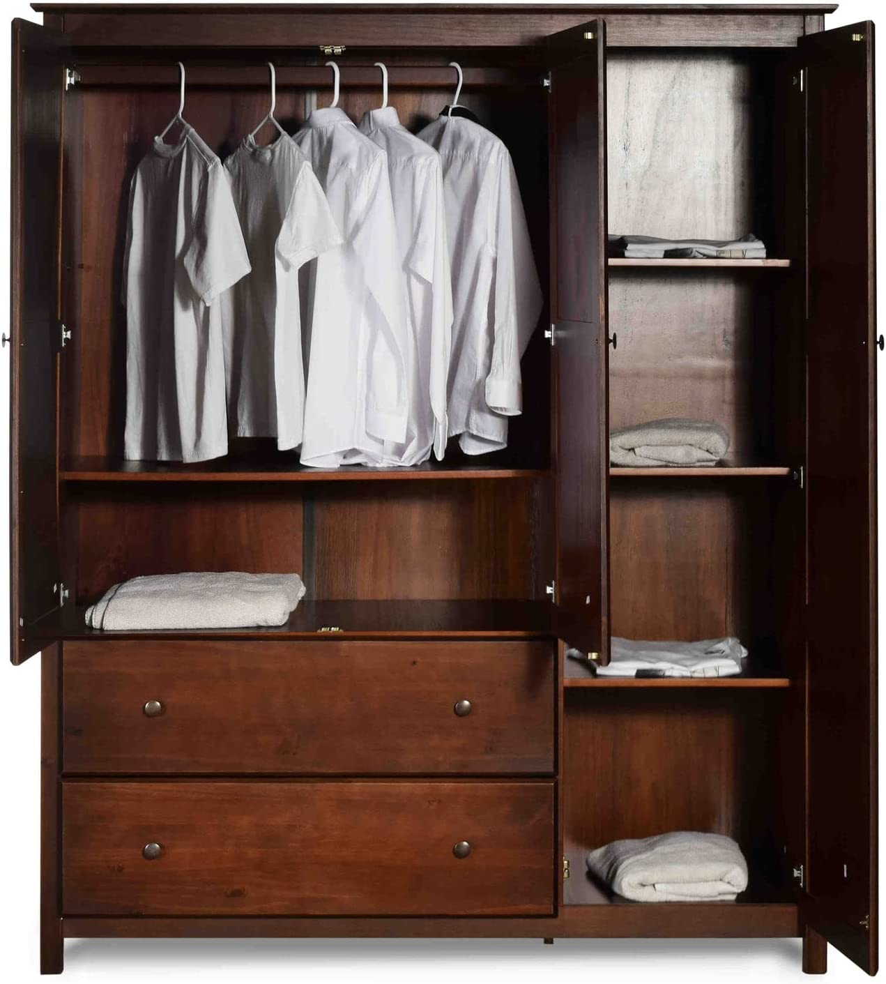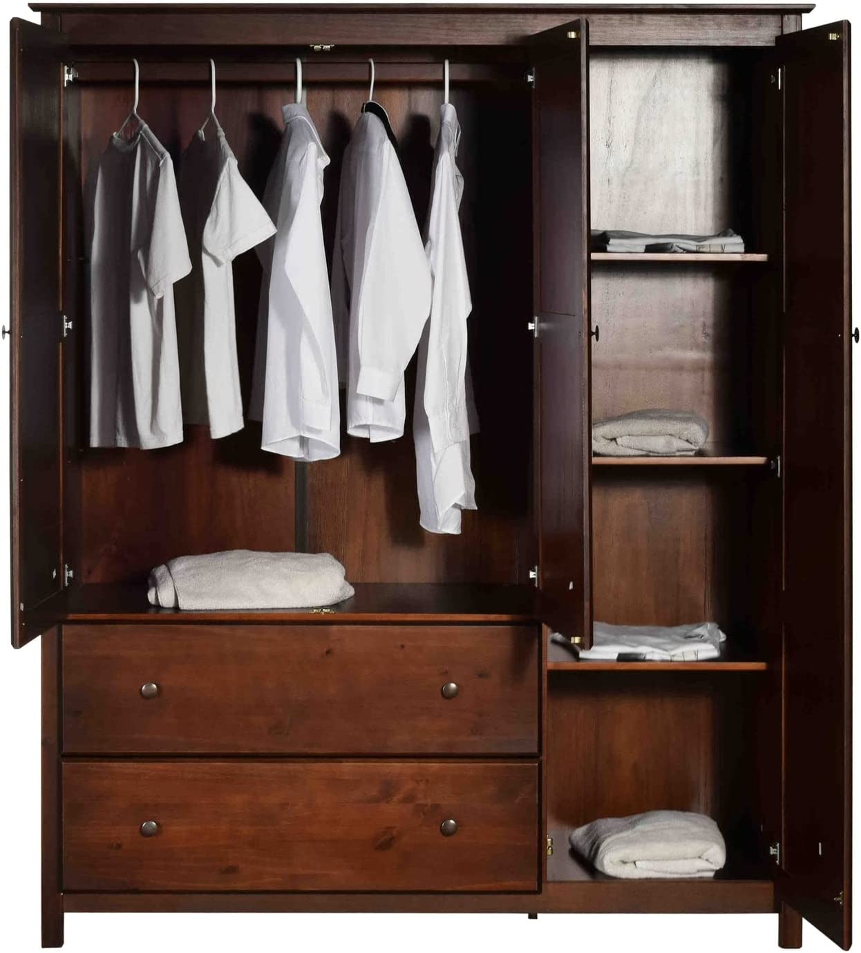 Grain Wood Furniture Shaker 3-Door Wardrobe, Cherry