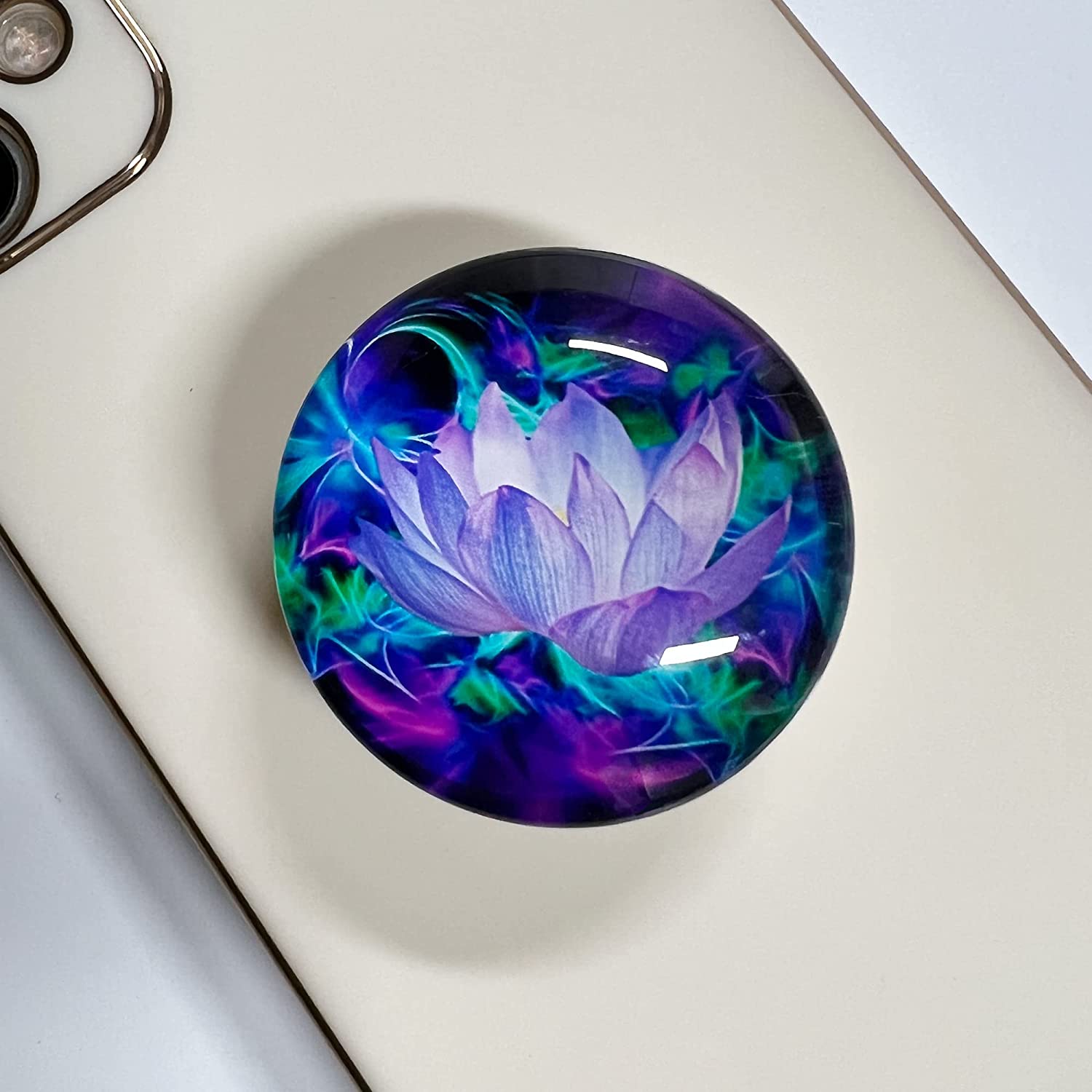 WUYULB Clear Glitter Purple Lotus Flower Design Expandible Collapsible Mobile Phone Grip Cell Phone Stand Holder for Smartphones Cellphone Accessory
