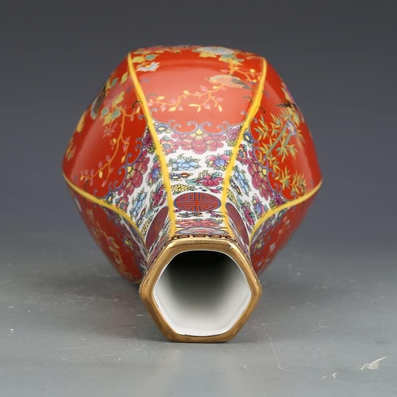 ZSEDP Ceramics Ornaments Enamel Hexagonal Vase Antique Porcelain Porch Dried Flower Vase