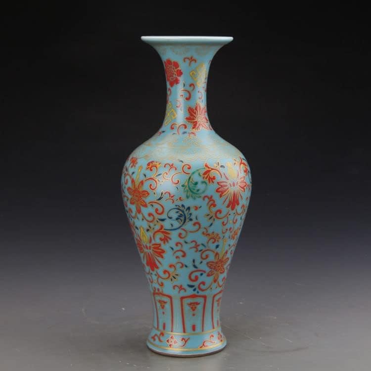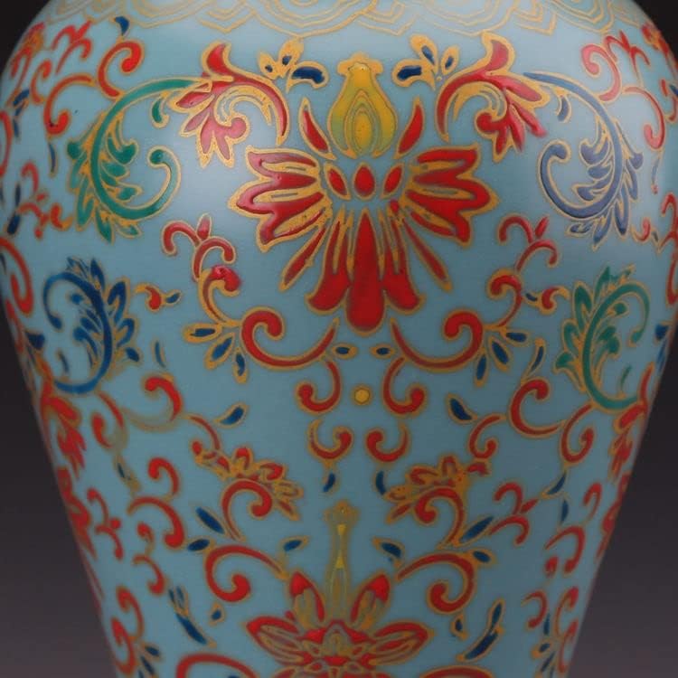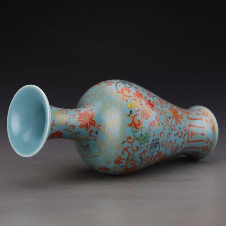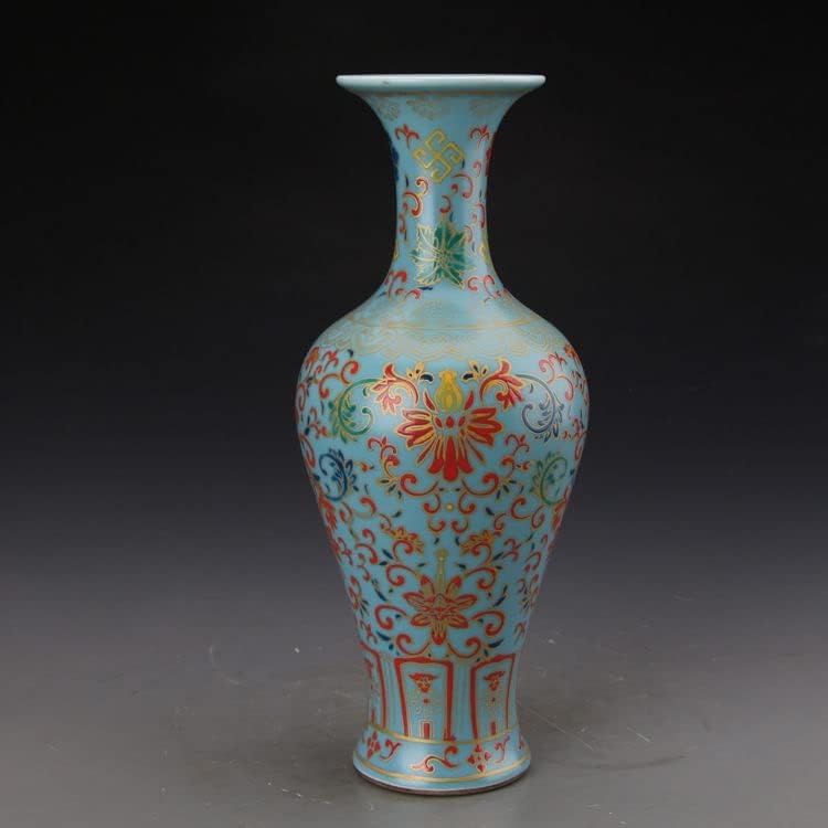 ZSEDP Blue Glaze Enamel Precious Phase Pattern Fishtail Vase Ceramic Decoration Antique Flower Vase