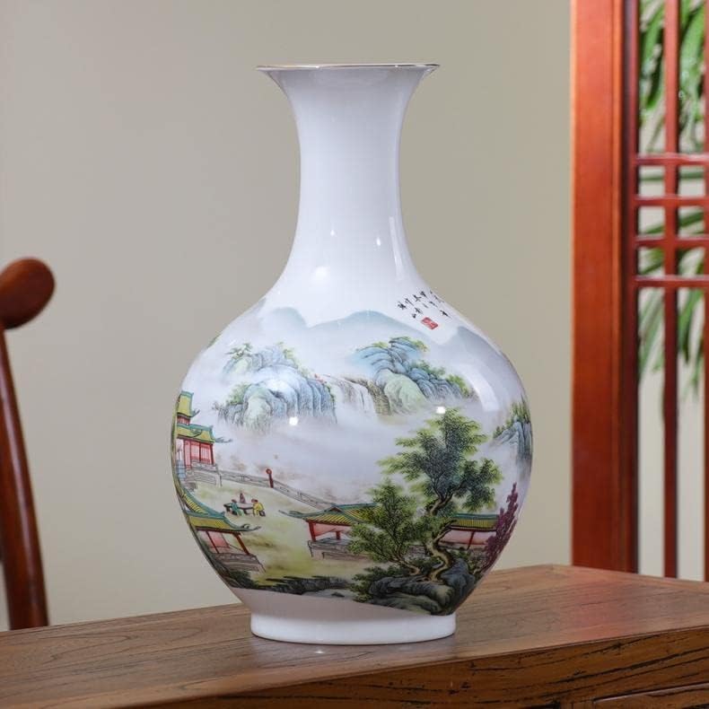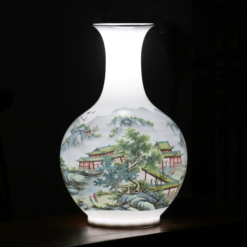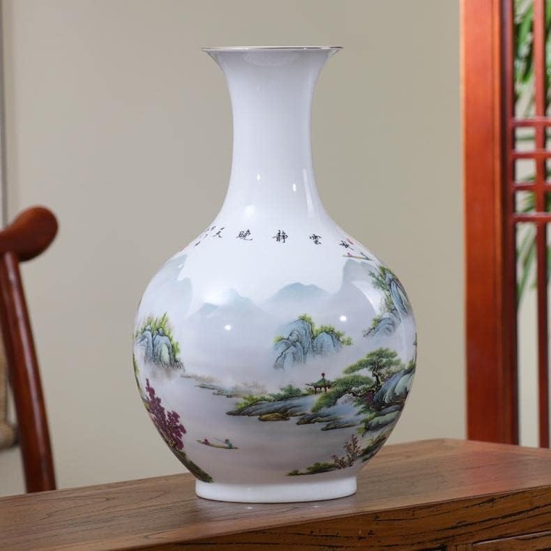 ZSEDP Antique Jingdezhen Vase with Flowers and Landscape Patterns Ceramic Table Vase Porcelain Decorative Vase