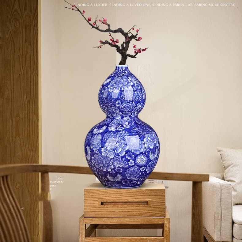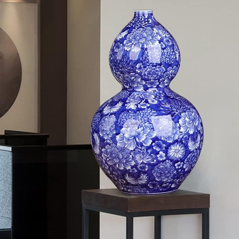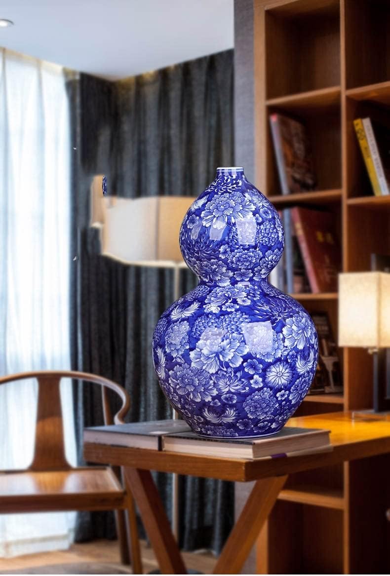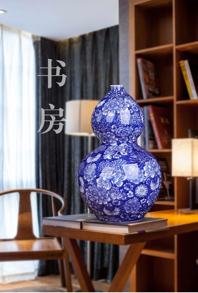 ZSEDP Jingdezhen Flower Pattern Vase Antique Porcelain Blue and White Porcelain Porch Gourd Ornaments