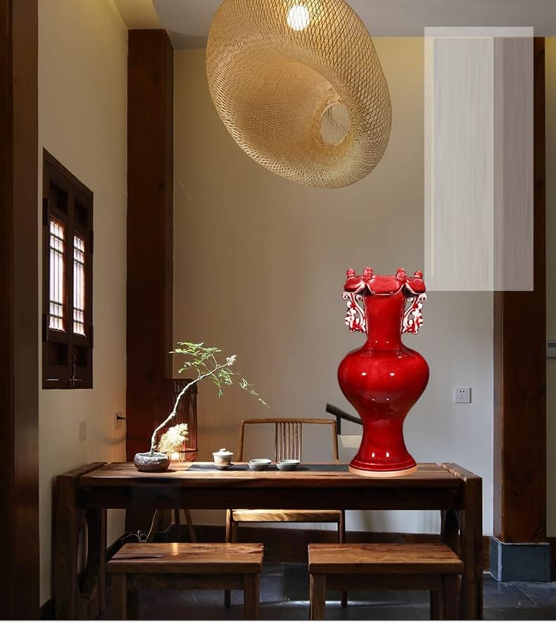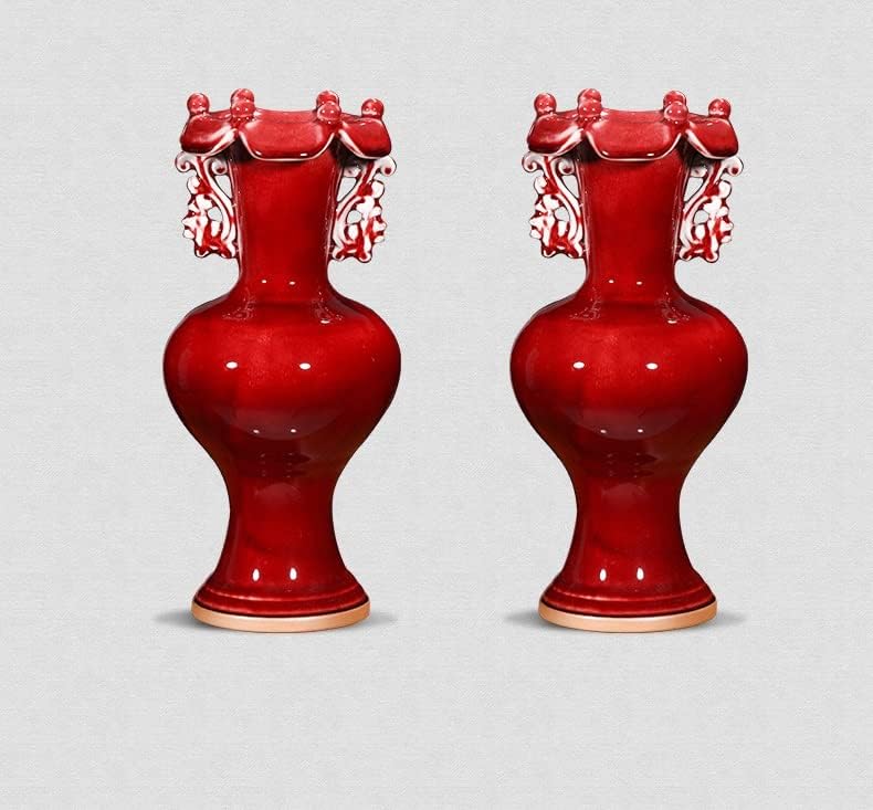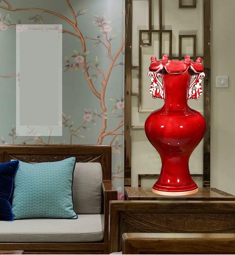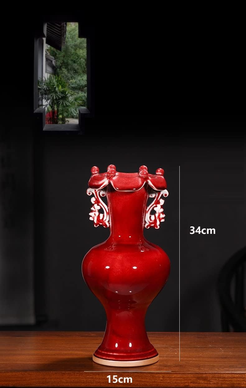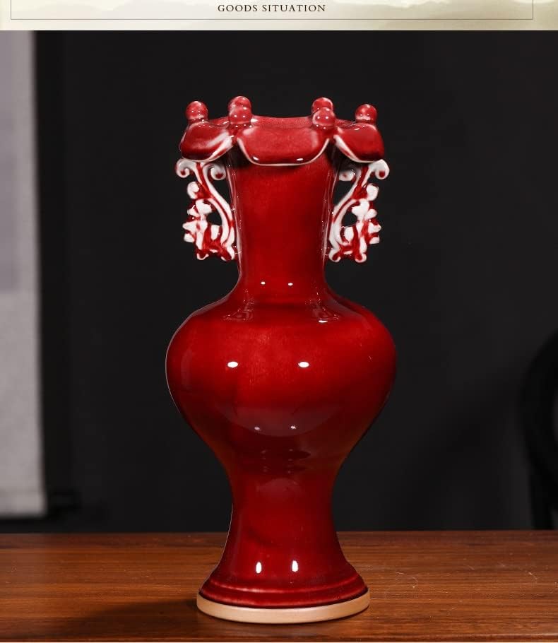 ZSEDP Ceramics Jun Porcelain Antique Vases Furnishings Decorative Arts and Crafts Double Ears Leaf Mouth Vases