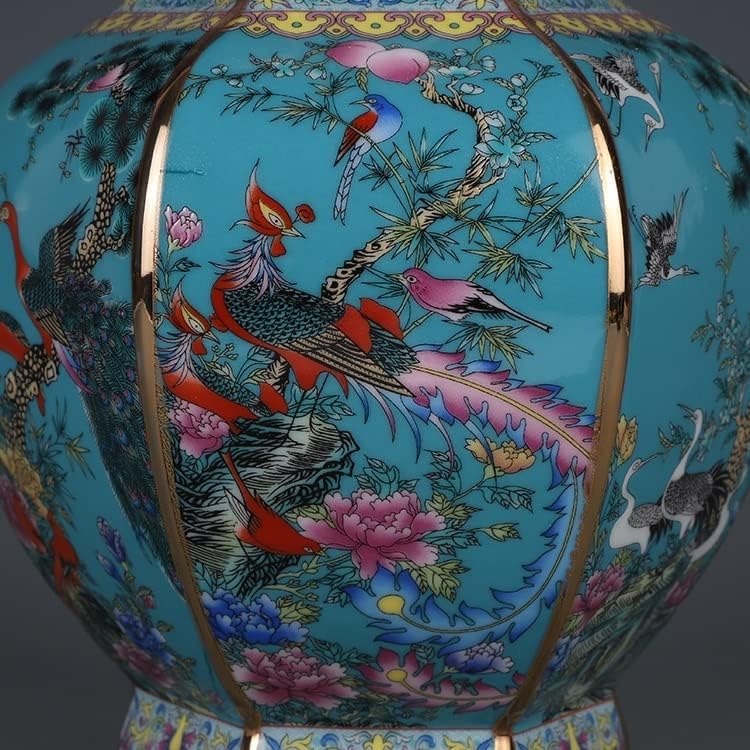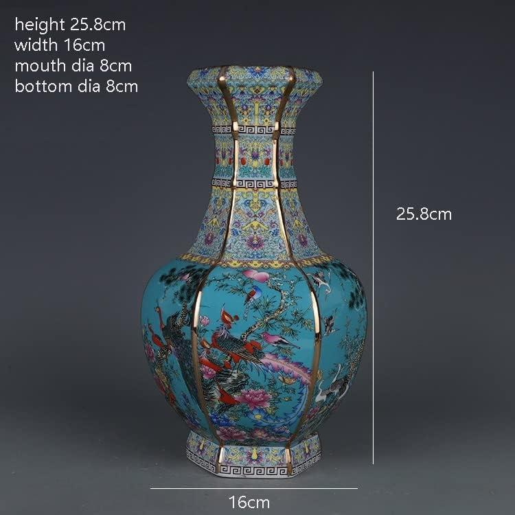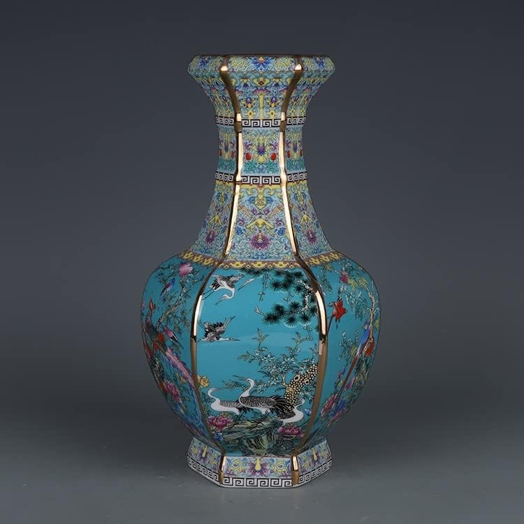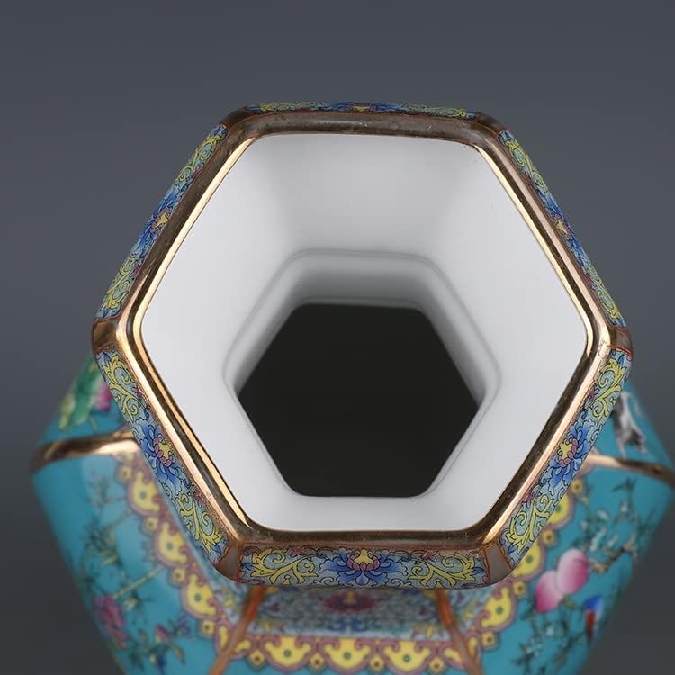ZSEDP Enamel Hexagons Vase with Flower and Bird Pattern Jingdezhen Antique Ceramic Vase