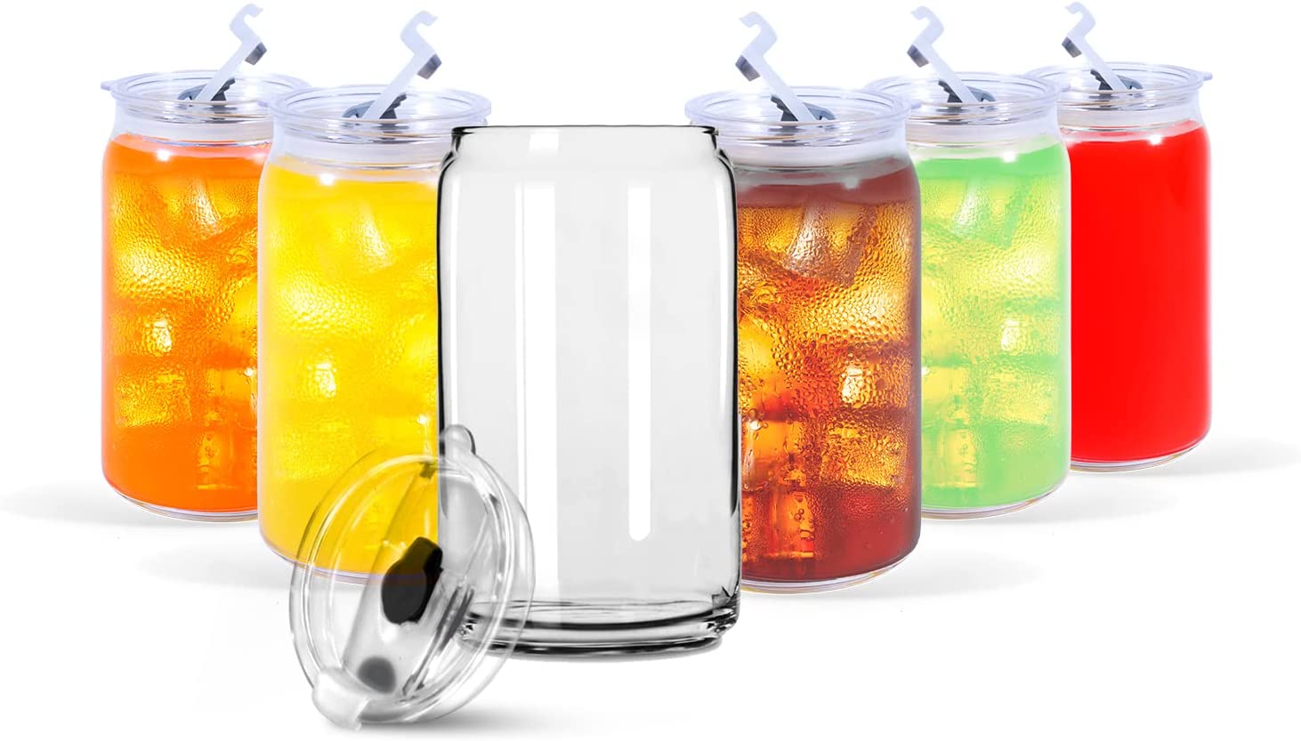 ✅ PERFECT FOR ANY OCCASION – It doesn’t matter what drink you’re drinking if it’s served in the right glass cans, and this glass cups with lids is exactly what you need! Designed to capture the whole rich foam of a delicious soda or beer, or create a surprising presentation for your favorite cocktail recipes, perfect for everyday life, weddings, parties, restaurants and more.