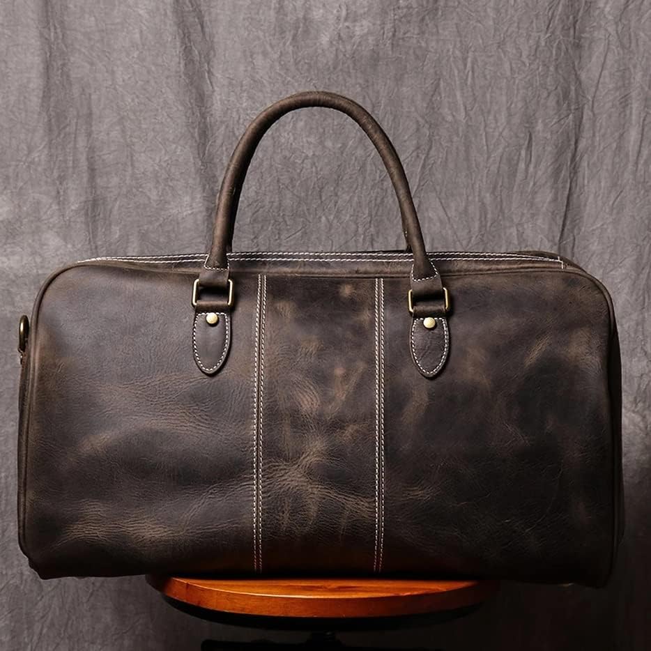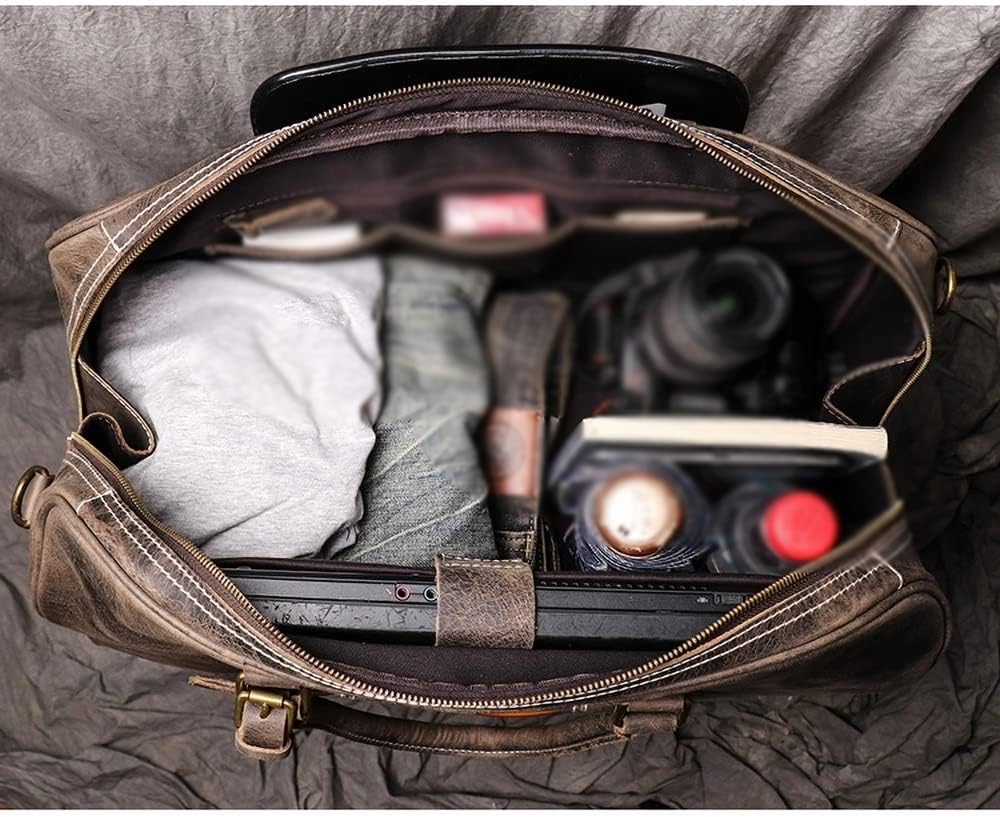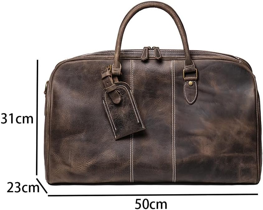 ZLXDP Leather Men's Travel Bag with Shoe Pocket 20 Inch Big Capacity Vintage Leather Weekend Messenger Bag