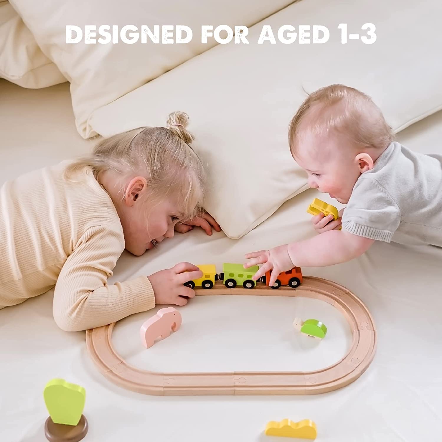 Toddler Toys Wooden Train Set for Toddler with Train Tracks, Train Toys Toddler Train Set for 18 Month 1 2 3 4 Year Old Boys and Girls, Wooden Train Track Fits Brio/Thomas/Melissa and Doug