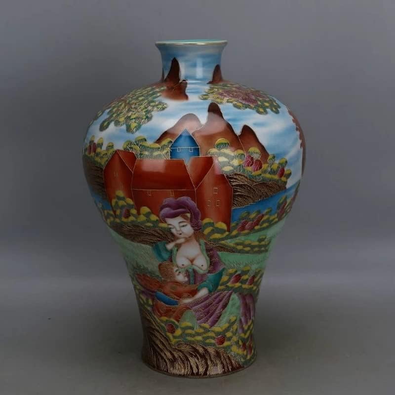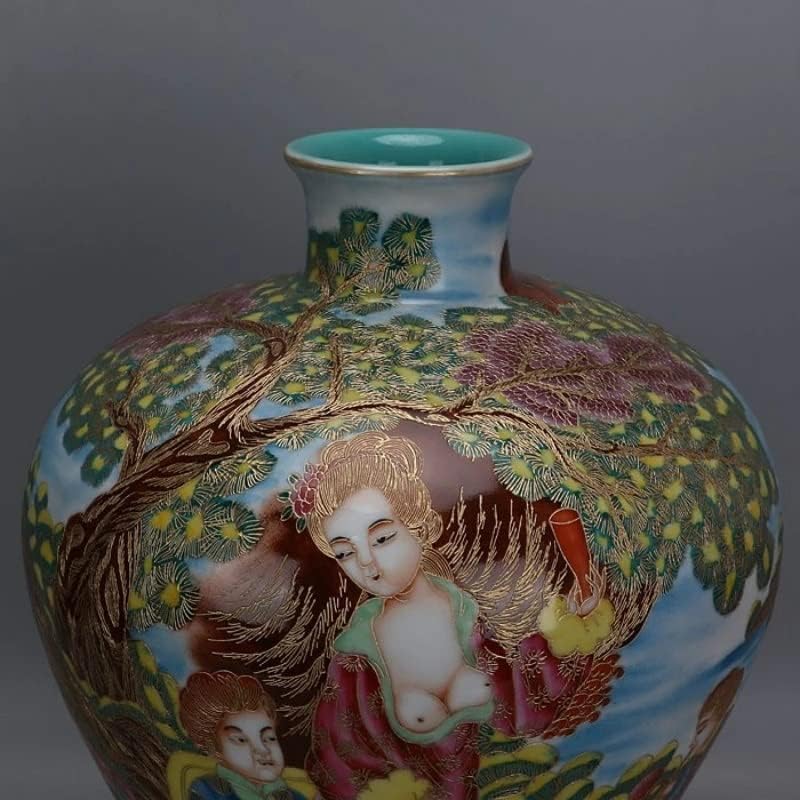 MJWDP Chinese Style Antique Jingdehzhen Handmade Spun Gold Enamel Porcelain Vase for Art Decoration
