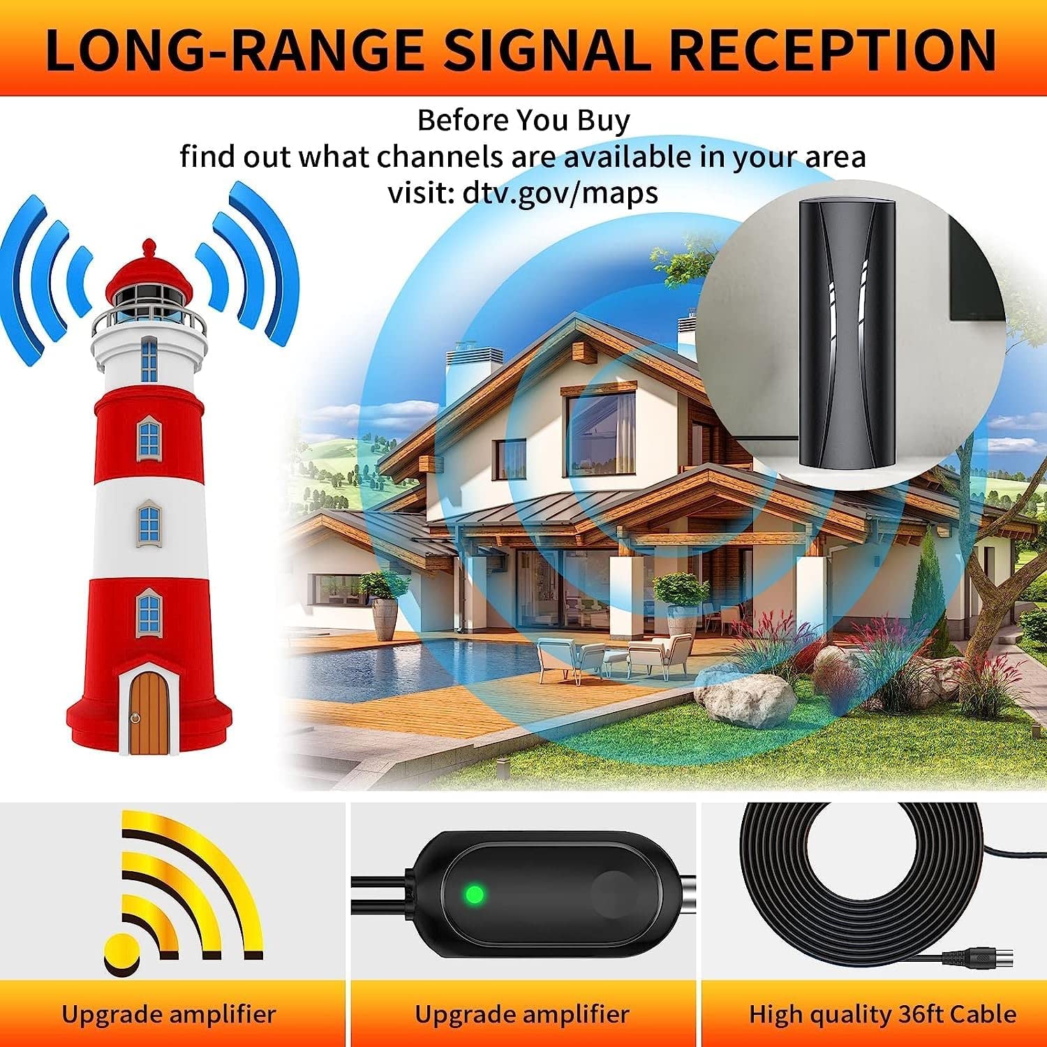 TV Antenna for 560+ Miles Range, HOTTV Upgraded Digital Antenna for TV Indoor Outdoor, TV Antenna for Smart TV & Older TV with Signal Booster, Support 8K 4K 1080P Fire tv Stick - 36TF Cable