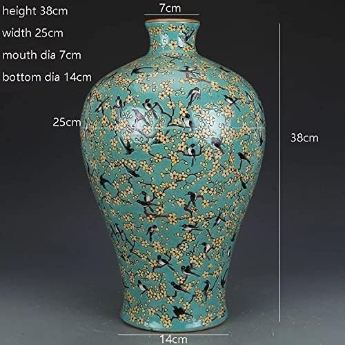 MJWDP Hand-Painted Green Pastel Rose Magpie Plum vase Antique Porcelain vase