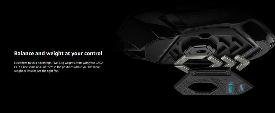 Logitech updated its iconic G502 gaming mouse to deliver even higher performance and more precise functionality than ever. Logitech G502 Hero high Performance Gaming mouse features the next generation Hero 16K Optical sensor, The highest performing and most efficient gaming sensor Logitech has ever made. An all-New lens and an updated tracking algorithm deliver ultra-precise tracking with no acceleration, smoothing, or filtering over the entire DPI range. Now, customize RGB mouse lighting to match your style and environment or sync to other Logitech G products. No matter your gaming style, It's easy to tweak G502 Hero to match your requirements, with custom profiles for your games, adjustable sensitivity from 200 up to 16, 000 DPI, and a tunable weight system that allows for tuning and balancing of up to five 3. 6G weights for just the right balance and feel.