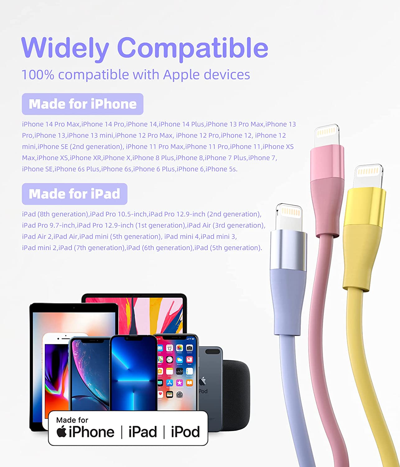 ?【Universal Compatibility&Good Service】iPhone Charger Cable for iPhone 14/13/12/11/11 Pro/11 Pro Max/XS/XS Max/XR/X/8 Plus/8/7 Plus/7/6s Plus/6s/6 Plus/6/5s/5c/5/Air/Air 2/Mini/Mini 2/Mini 4 and more. If you have any questions, please feel free to contact us. Our service team will provide you with a satisfactory solution within 24 hours.