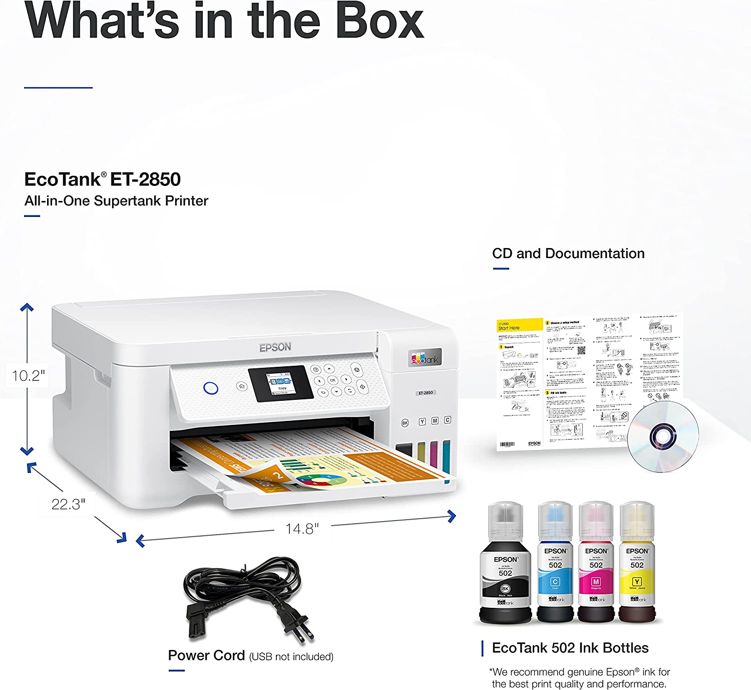 - Genuine Epson Ink for Genuine Epson Quality― Epson strongly recommends the use of genuine ink to ensure optimal print quality and performance. Use of non-genuine ink could cause damage not covered under the printer’s ltd. wnty.