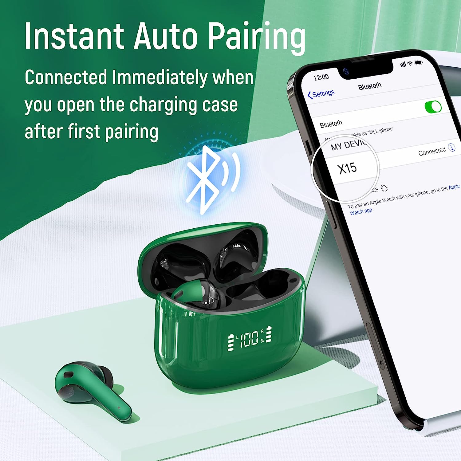 One Step Pairing and Touch Control: For first pairing, just open the case and choose"X15" on your phone's bluetooth menu, both earbuds will connect with your phone Immediately. Earbuds can auto connect with your last device next time. With touch control, you can control music play/pause, previous/next track,volume+/- via your finger tap on earbuds.You can also answer/reject, end calls and enable voice assistance by tapping on earbuds. No need to adjust these on your phone.